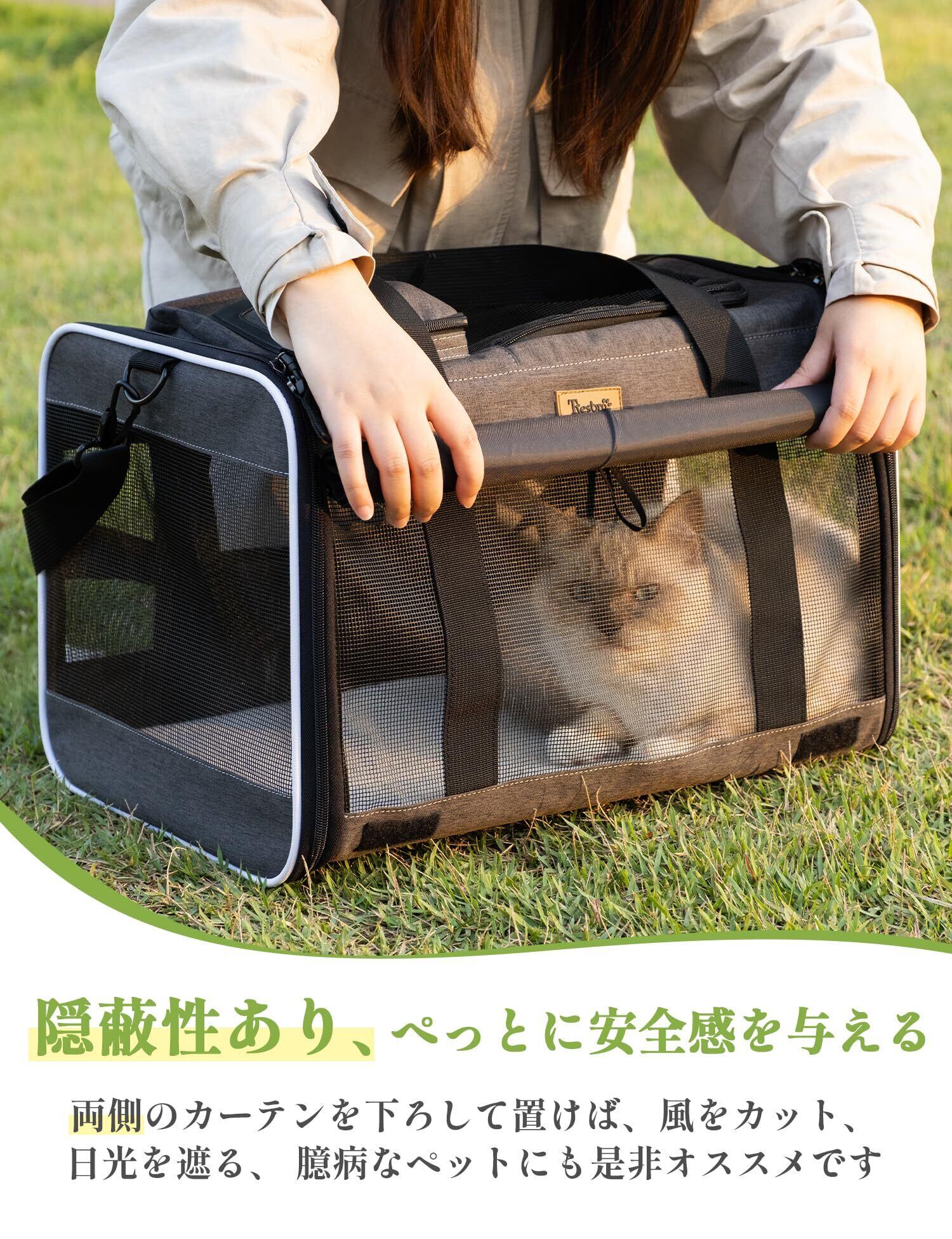 Tresbro 猫 キャリー 猫 きゃりーバッグ ロック式ダブルファスナー カーテン付きの 猫 移動用キャリー 犬用キャリーバック 変形しない 通気性 車載/旅行/通院/災害避難用 ペットバッグ 猫用 犬用 小型犬用 手提げ ショルダー (ブラックー「カーテン付き」)