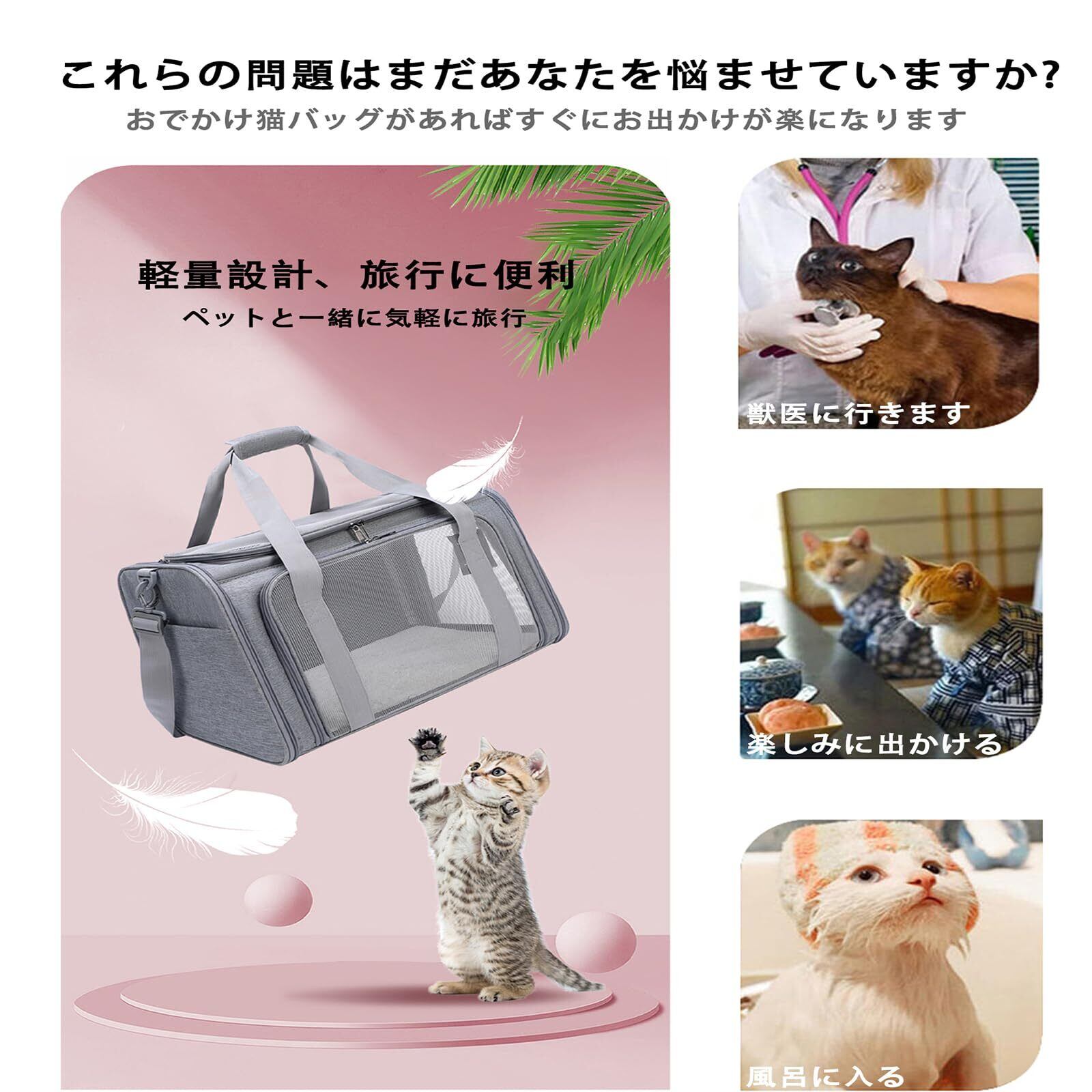 猫 キャリー 通気性 ペットキャリーバッグ 猫用 折りたたみ可能 安全設計 小型犬対応 軽量 多機能バックパック 猫 ケージ 持ち運び 旅行・通院・外出に最適(猫 きゃりーバッグ 選べるカラー)