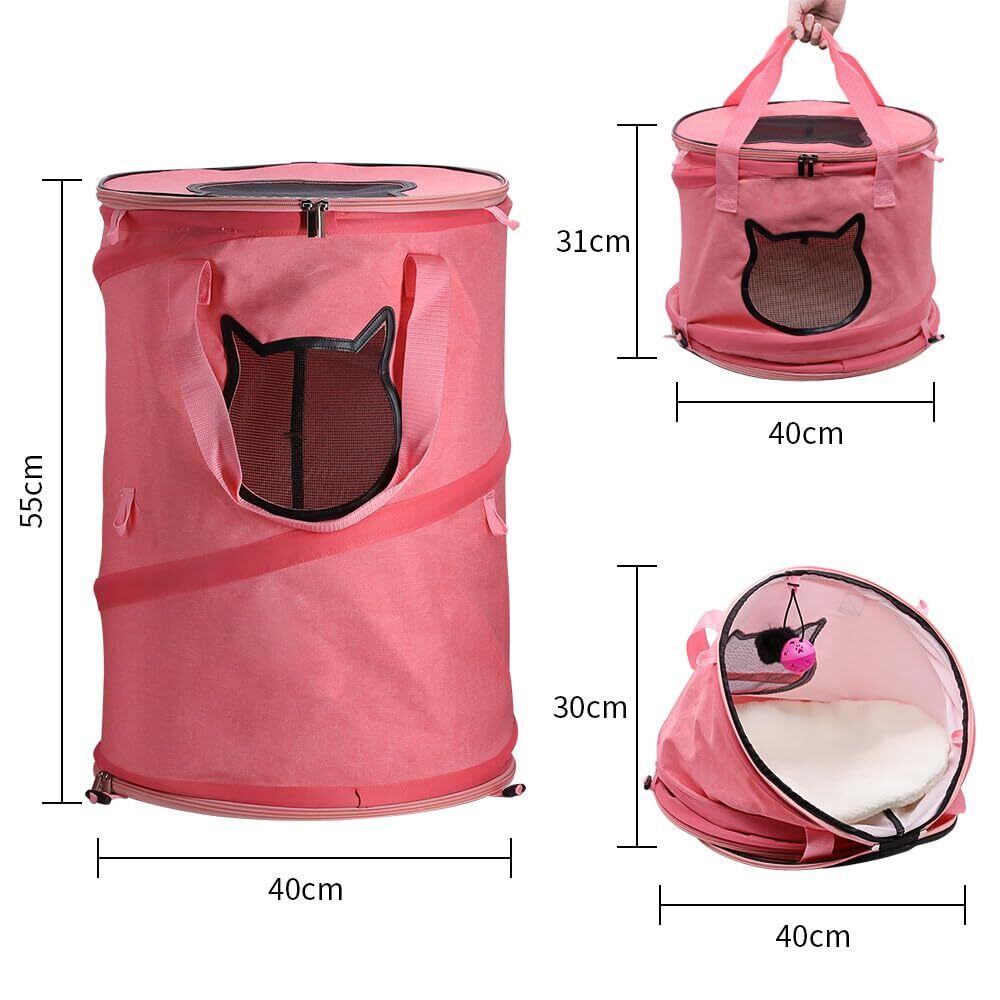 【5kg以内のペット適用】:猫キャリーの主材料:ポリエステ。サイズ:利用時サイズ:55*40*40CM、収納サイズ:40 cm *7cm、ペットキャリーサイズ:40 *30cm、ペットベッド:40cm*30cm、ペットトンネル:55cm*40cm。耐荷重:約5kg。推薦ペット種類:猫、小型犬、小動物。製品内容:ペットキャリー×1猫食器×2鈴ボール×1。