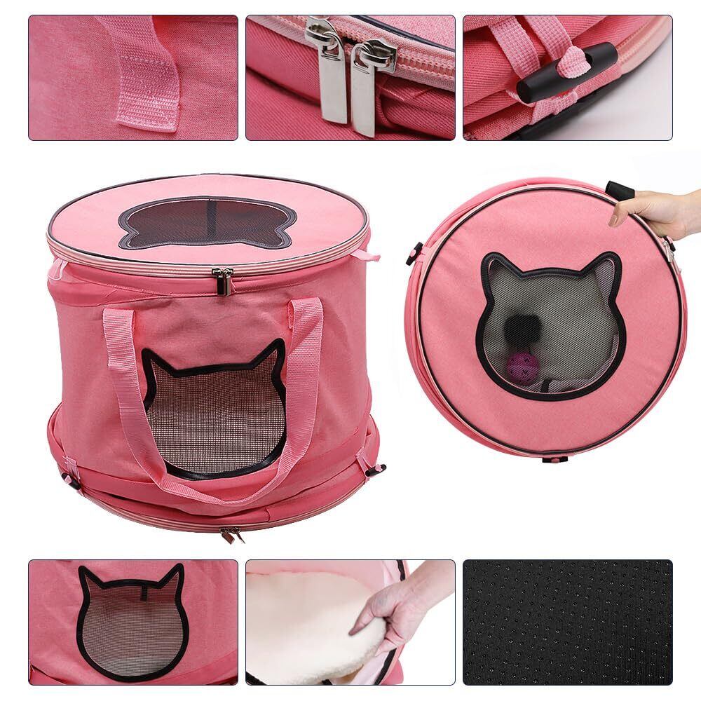 Glvaner 猫 キャリーケース ペットキャリー 猫キャリー 猫トンネル 猫キャリーバッグ ペットハウス 折りたたみ式 小中型猫・犬用 手提げキャリー 犬の鉢 猫食器 鈴ボール付 3WAY ペット用品 アウトドア 耐久性 ストレス解消 お出かけに便利 (レッド)