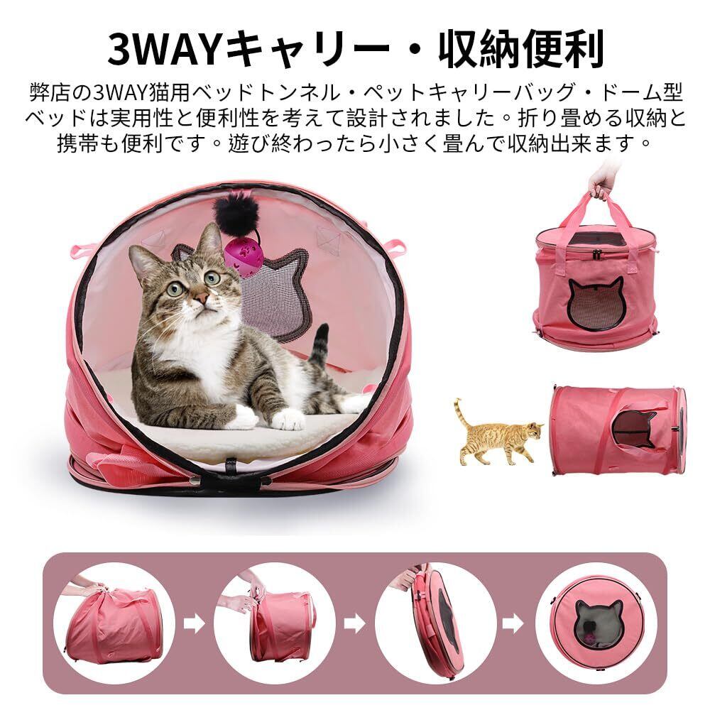 【3WAYキャリー・収納便利】弊店の3WAY猫用ベッドトンネル・ペットキャリーバッグ・ドーム型ベッドは実用性と便利性を考えて設計されました。旅行とか、アウトドア活動とか、遊びとか様々なシーンに適用いたします。ペットは友達であり、家族です。いつでも、どこでも飼い主と過ごし時間が楽しいです。折り畳める収納と携帯も便利です。遊び終わったら小さく畳んで収納出来ます。バックの組立、収納、水洗いできる素材だから、いつも清潔に!