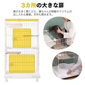【商品説明】:コンパクトサイズで子猫にも最適なミニキャットケージです。 掃除の時やペットを取り出すのに便利な天井扉タイプです。 大きな扉でお掃除や物の出し入れがラクに行えます。 猫がゆっくりくつろげる大きめの丈夫な木製棚板が2枚付いています。 移動に便利なキャスター付きです。