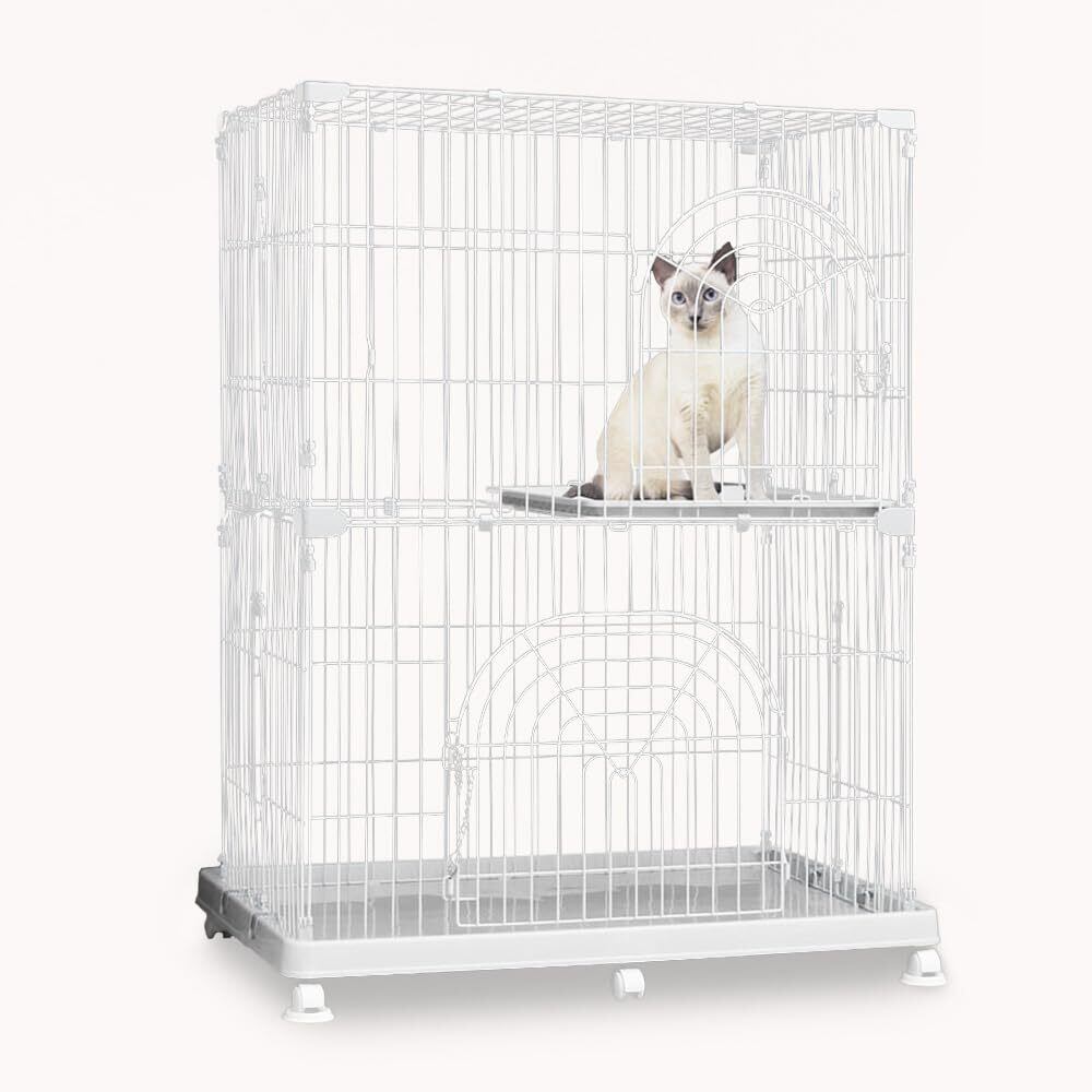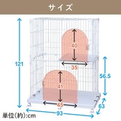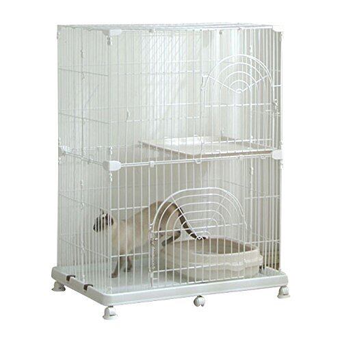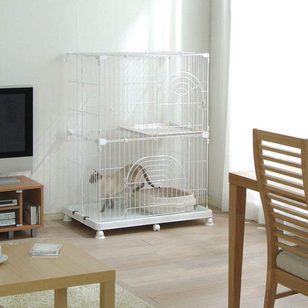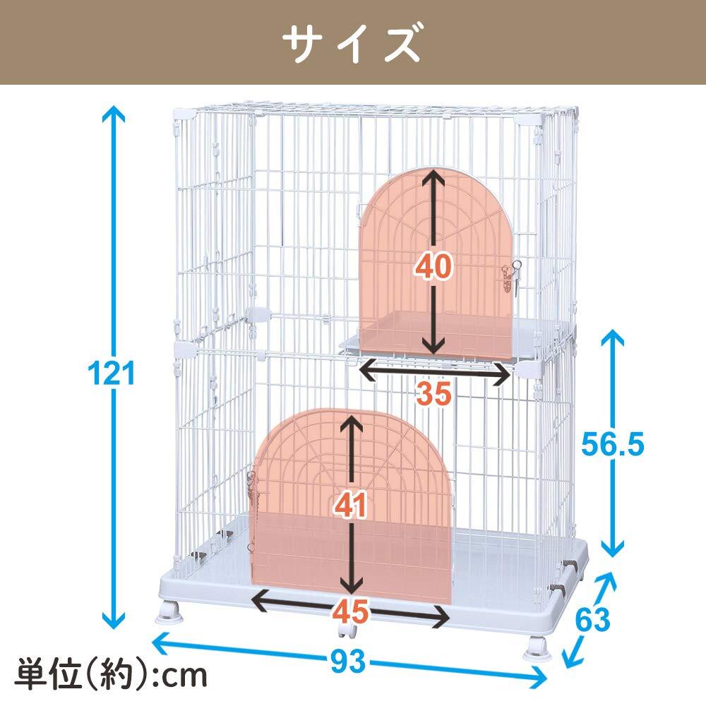 アイリスオーヤマ 猫 ケージ コンパクト オリジナルペットケージ 2段 ホワイト キャスター付 高さ約121×幅約93×奥行約63cm