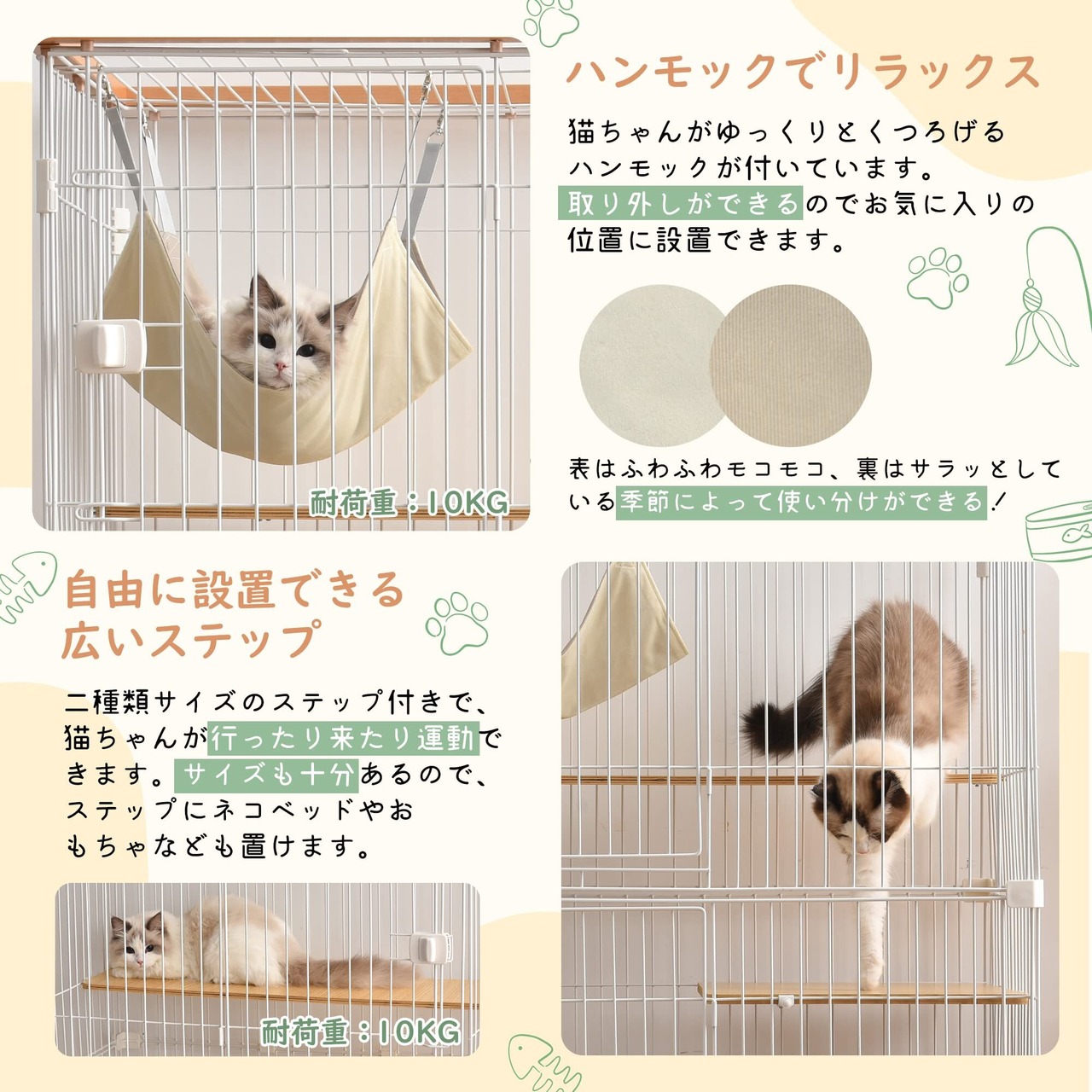 【こんな時に大活躍キャットケージ】お留守番時に子猫の安全を守る、多頭飼いの時けんか防止用、猫の運動不足を解消したい時ケージ内で上下運動できる、猫が病気になる時世話しやすい、お料理中やお食事中いたずら防止やテーブルに上がるのを防止…大事な猫ちゃんの安全を守って、飼い主も安心です!