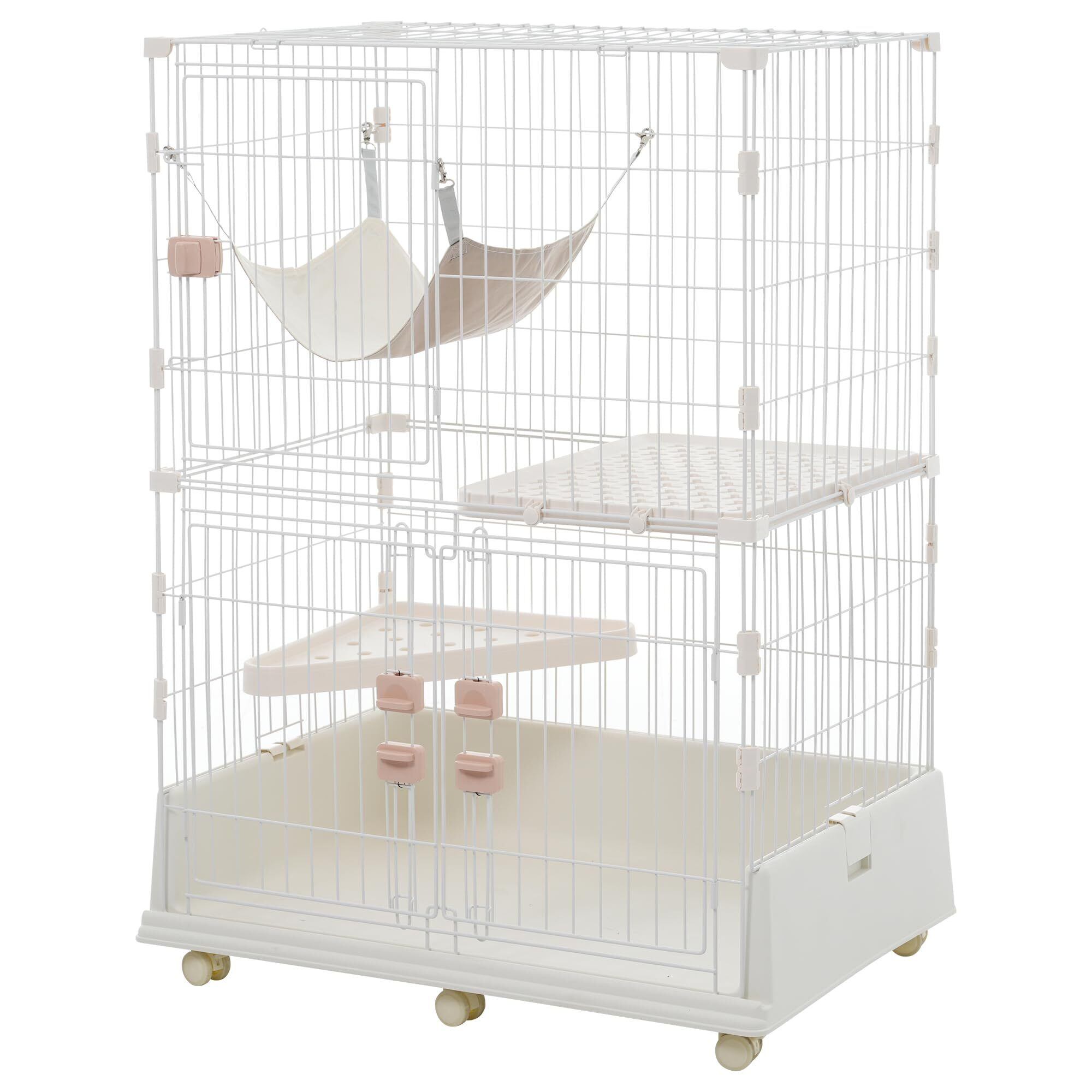 P PURLOVE 【2025年新仕様】猫 ケージ キャットケージ 2段 ペットケージ キャスター付 両開きドア 猫ゲージ 多頭飼い キャットハウス 1段可能 留守番 保護 脱走防止 おしゃれ