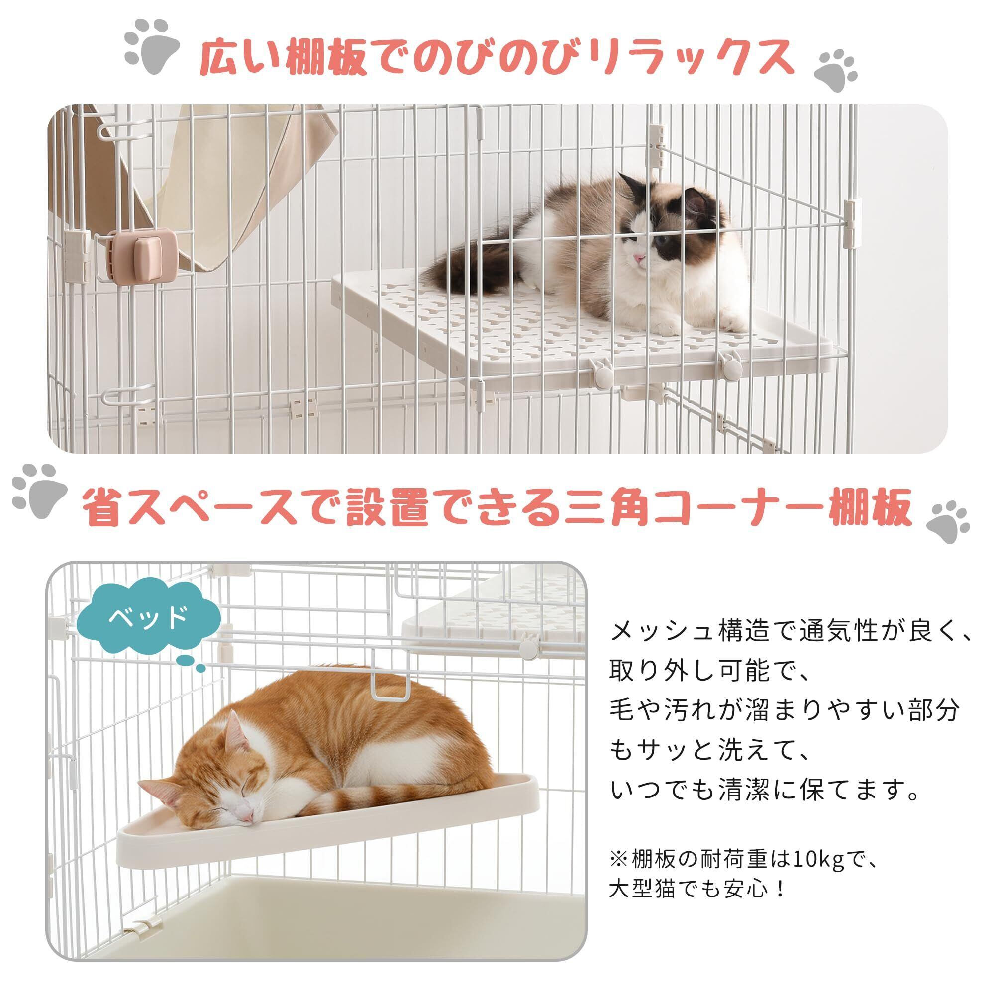◆ハンモック、広い棚板と多機能ステップのご用意:ケージ内にハンモック、広い棚板と多機能ステップをご用意しました。猫ちゃんが利用してのんびりリラックスできます。それに、ケージから取り出すことも簡単で、掃除しやすいです。