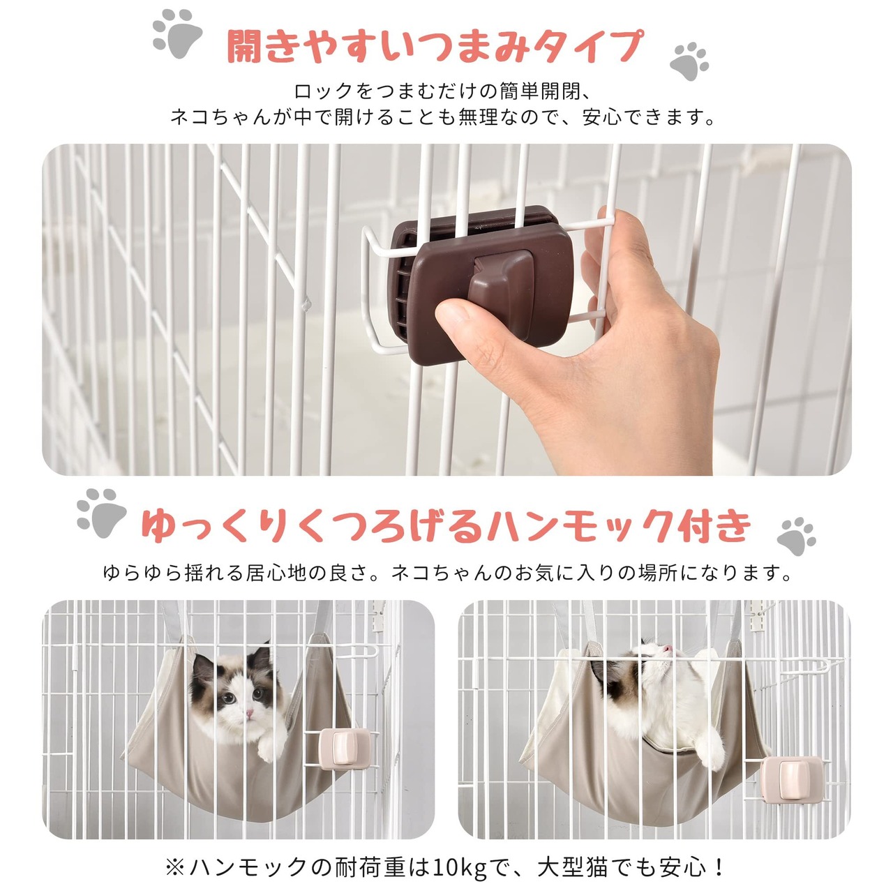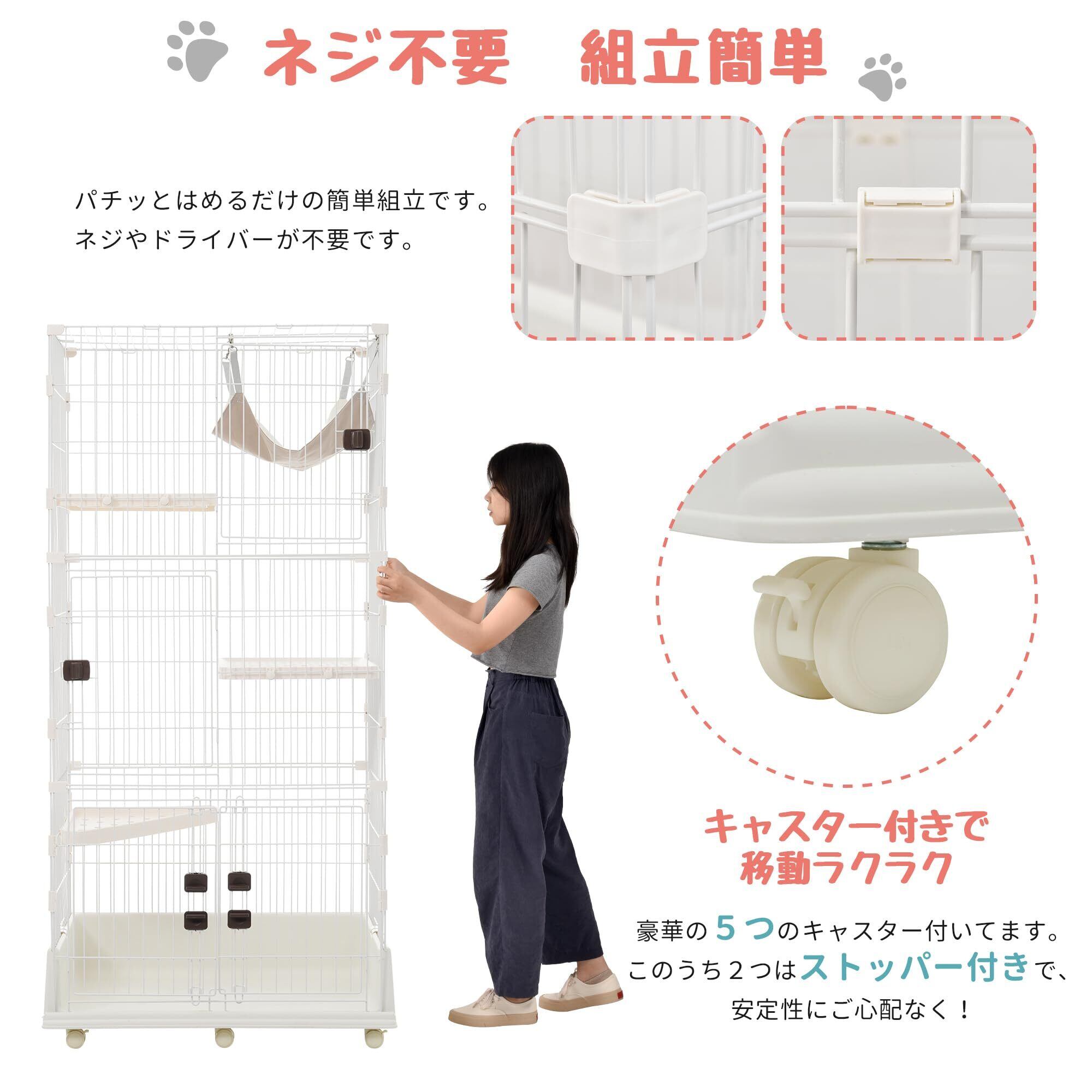 ◆つまみタイプのドアがいたずらしにくい:全ての段に扉がついているので、ニャンコや物の出し入れが簡単です。ロックをつまむだけの簡単開閉、ネコちゃんが中で開けることも無理なので、安心できます。