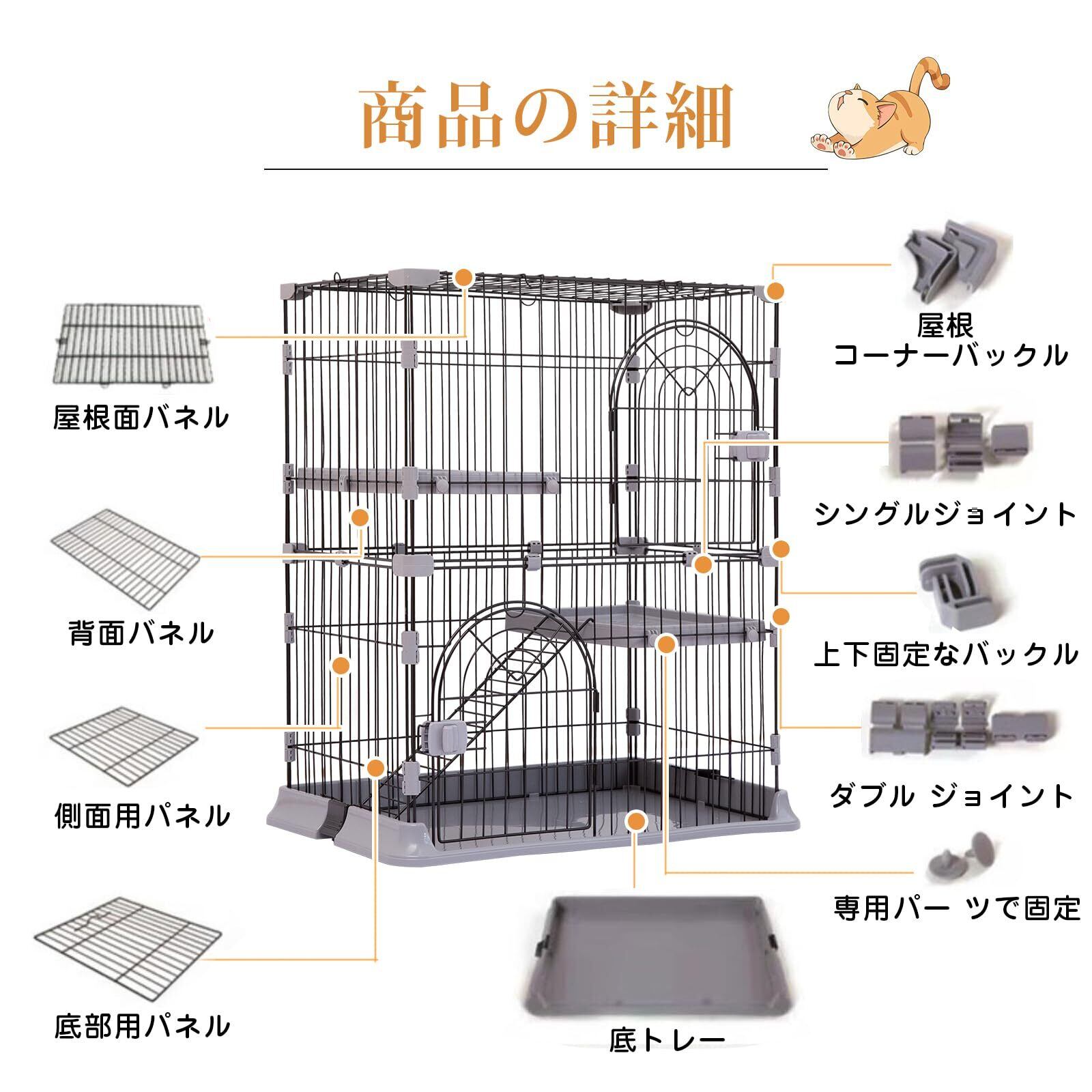 【猫を飼ううえで必要なアイテム】猫用ケージには①外出時のいたずらや誤飲防止のため、②病気の療養や先住猫からの隔離、③災害時のケージ生活に慣らすためなどのメリットがあります。設置するために場所は必要ですが、猫を飼ううえで持っておくと便利なアイテムです。多頭飼いさんにも便利に使える余裕サイズ、広々とした空間で自由自在。