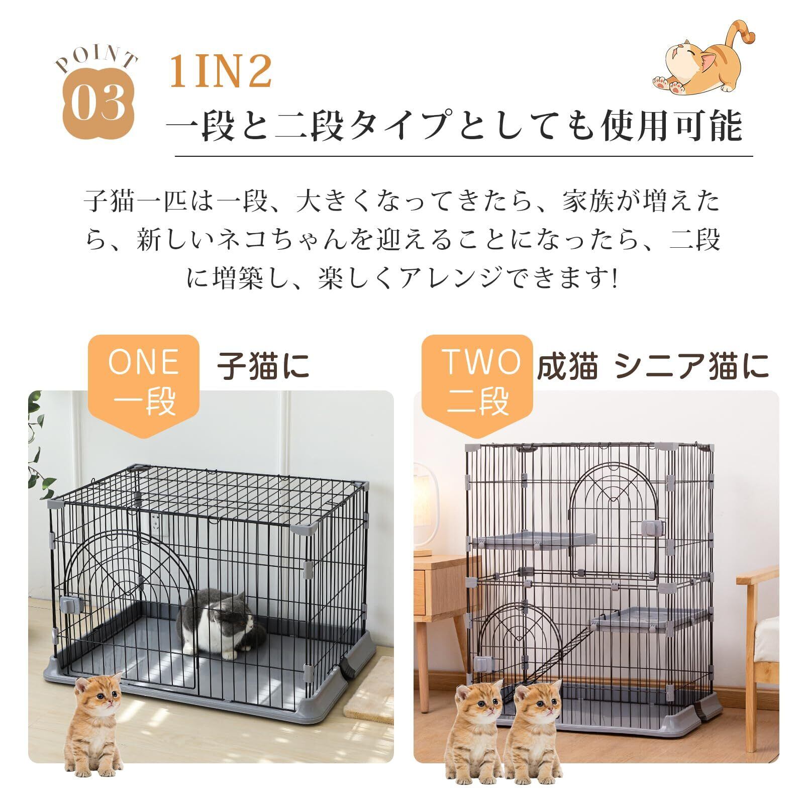 【1段、2段タイプとしても使用可能】子猫一匹は一段、大きくなってきたら、家族が増えたら、新しい猫ちゃんを迎えることになったら、二段または三段に増築し、楽しくアレンジできます。