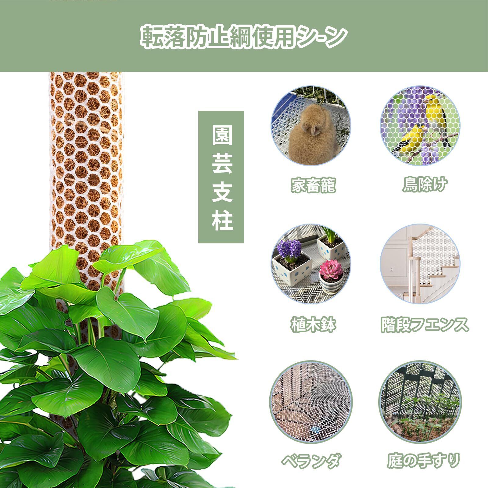 【使いやすくて園芸ネット】このネットはハサミで好きな長さにカットできて、軽くて曲げやすく、少し引っ張ると伸びるので、どんな場所にもぴったりフィット!結束バンドを通すだけで、取り付けも取り外しもとっても簡単。使わないときはクルクル巻いてコンパクトにしまえるから、収納もラクラクです。ほどよい柔らかさでしっかり丈夫だから、フェンス代わりに使っても安心。