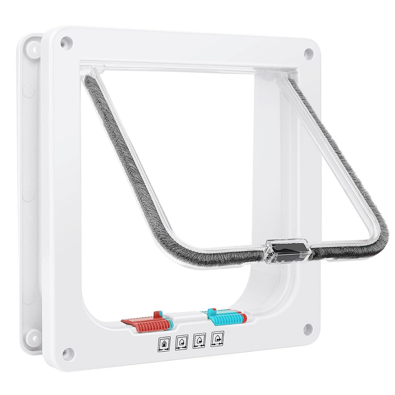 窓用の薄い猫ドア、ペットドアと障子、4方向ロック付きの安全なペットドア、薄いドアと壁用の風雨防止猫ダンプ(M、6.7 in x 6.3 inダンプ) [並行輸入品]
