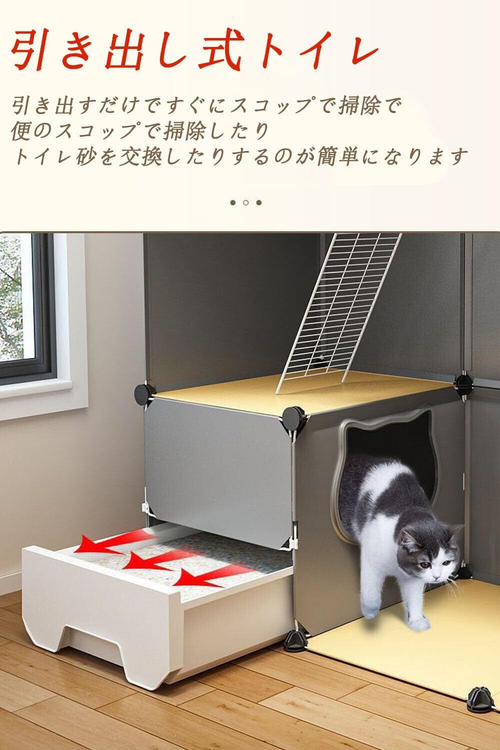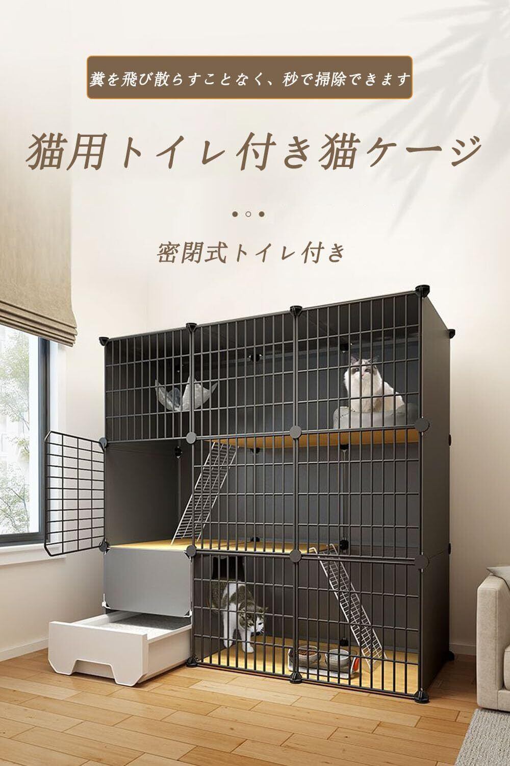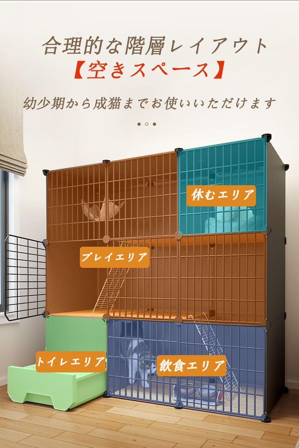 【お掃除簡単/組み立てが】この3段キャットゲージには引き出し式トイレが装備されており、猫砂の交換が容易になるように設計されており、掃除がより便利です。同時に、半密閉型の形状は、臭いの漏れを効果的に防ぎ、飛沫を防ぐことができ。猫用ケージの各パーツは自由に組み立てられるので,組み立ては簡単で、一人でも完成できます。