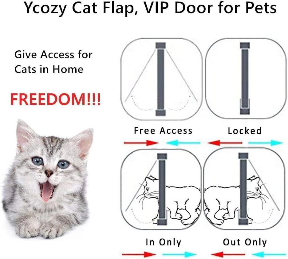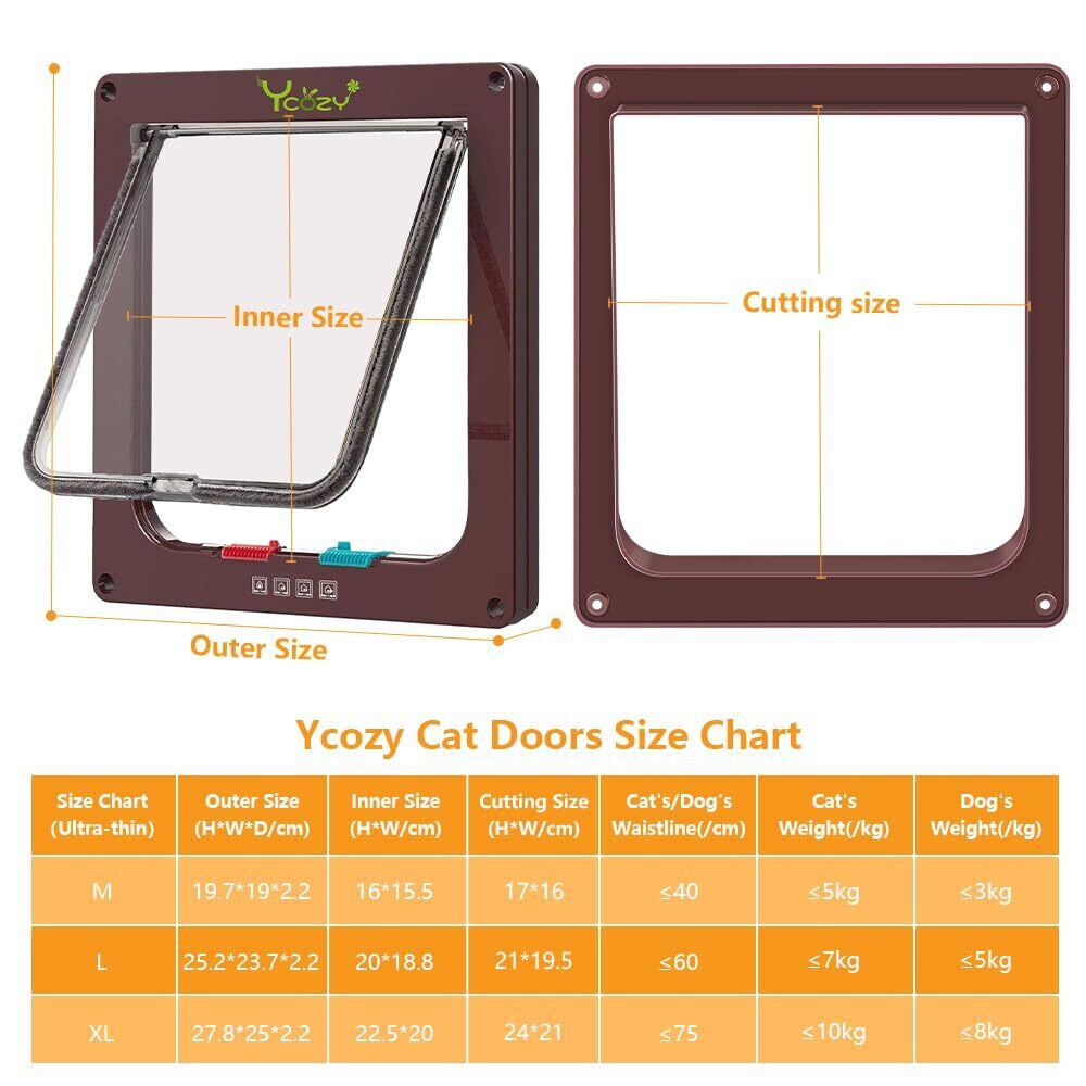 【Ycozyから購入】:Ycozyの猫出入り口を購入して、追加で12ヶ月のアフターサービス、90日の无事な返品。本製品に含む:超薄猫出入り口*1、ねじ(2.0cm)*4、ナット*4、ネジを保護するカバー*8、両面テープ*1、取扱説明書*1。