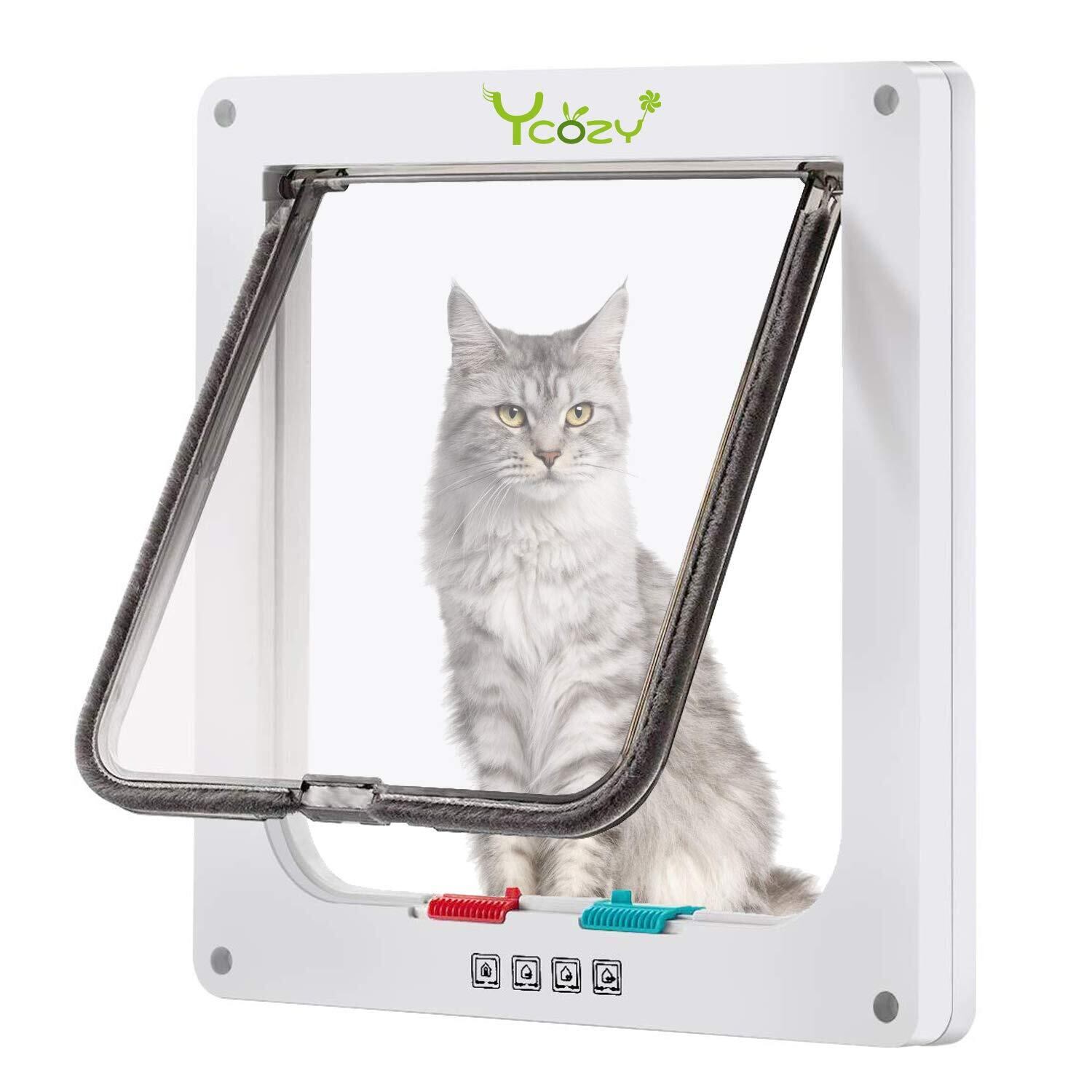 Ycozy ペットドア 猫 超薄型 外寸25.2×23.7cm お勧め最大戸の厚さ2.0cm 猫 出入り口 小型犬用 ドア 猫扉 4-way切替 ロック キャットドア 室内用 冷暖房対策