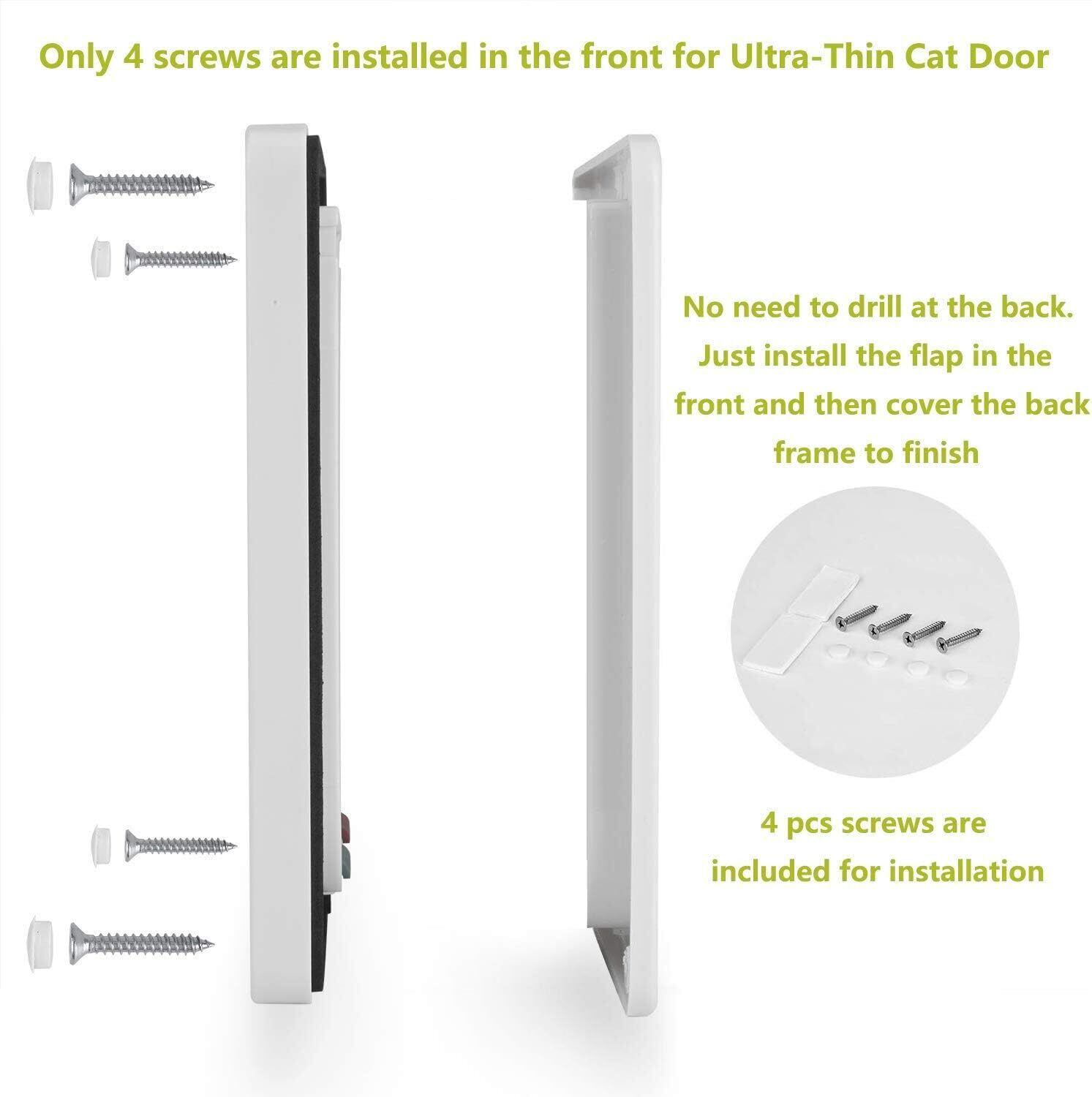 【ご購入前のご注意】: ※超薄型の猫扉は最大の取り付けの厚さ:2.0cmを勧めて、この厚さを超えると、通常モデルの猫扉を選んでください。あるいはネジを配することをお勧めします。ご注文をする前に「戸の厚さ≤2.0cm」ということをご確認ください。インストールビデ:https://youtu.be/VYO3x_NATIM。
