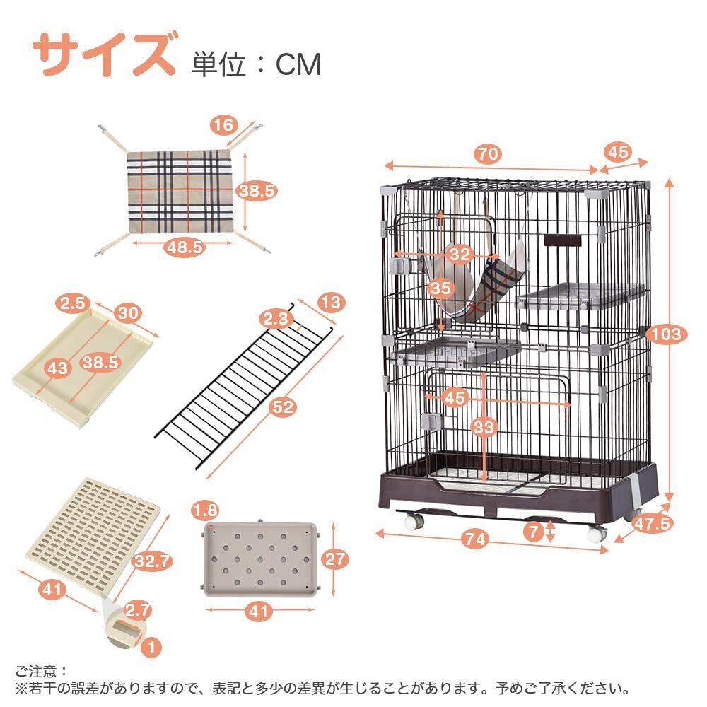 ◆ハンモック、広い棚板のご用意:可愛い猫ちゃんが利用してのんびりリラックスできます。それに、ケージから取り出すことも簡単で、掃除しやすいです。