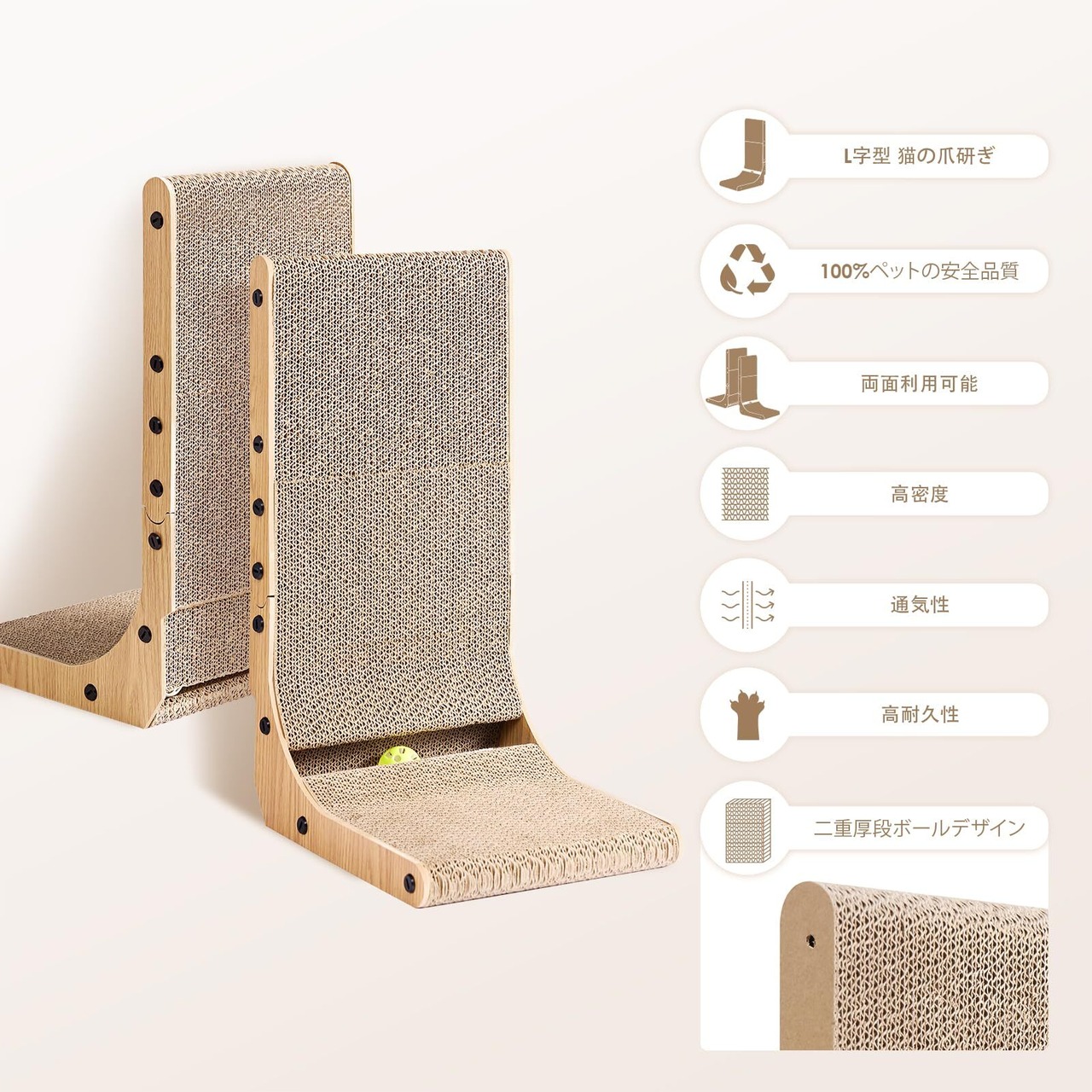 革新的なデザイン:家猫用の爪研ぎ段ボールはL字型のデザイン。壁やソファに立てかけて、家具を保護するためにお使いください。L字型にすることで、猫がさまざまな姿勢でひっかきできるよう、ひっかき面積を広くしています。