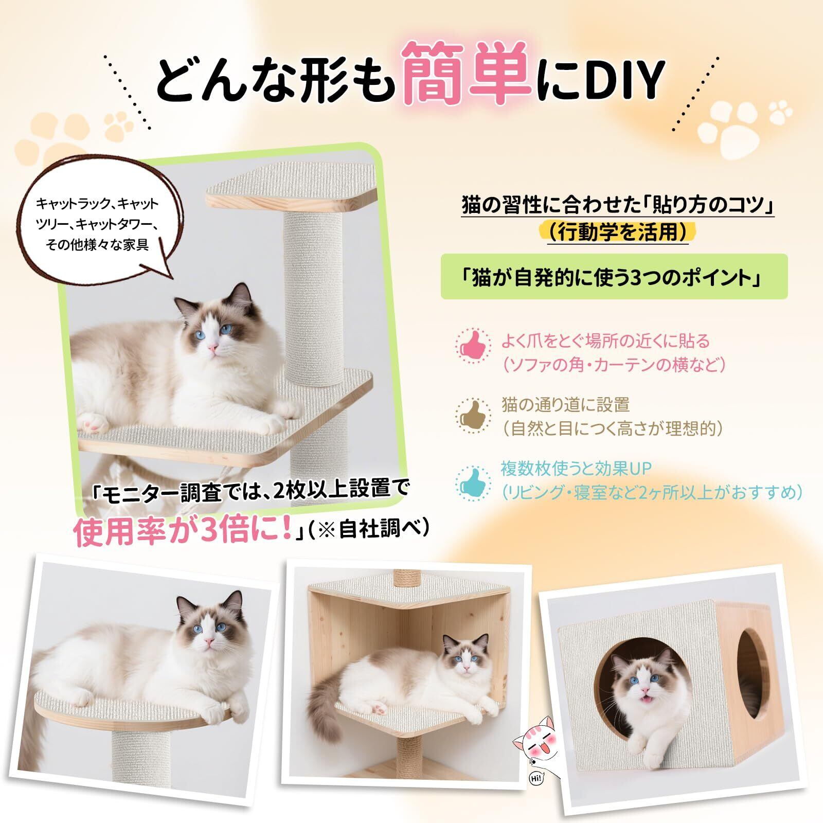 【インテリア 爪とぎシート】おしゃれな多機能猫の爪研ぎ:この爪とぎマットはカーペットの代わりになるだけでなく、キャットツリースタンド、壁、壁掛け家具のステップ、ソファなど、猫ちゃんが快適に過ごせる様々なスペースに適しており、猫ちゃんの飼い主にとって多用途なソリューションを提供します。清潔で引っかき傷のない生活空間を維持しながら、猫ちゃんに優しい環境を強化します。空間にシームレスに溶け込む機能的なアクセサリーで、ペットの健康も向上させます。猫 爪研ぎ ソファは、木材、プラスチック、ガラス、綿、麻、革など、様々な素材に使用できます。または貼り付け式爪とぎマットとしてお使いいただけます。お部屋に美しく溶け込みます。家具の角やキャットツリーの輪郭に合わせて簡単にカットでき、フォルムと機能性が完璧に調和しながらも、控えめなエレガンスを演出します。