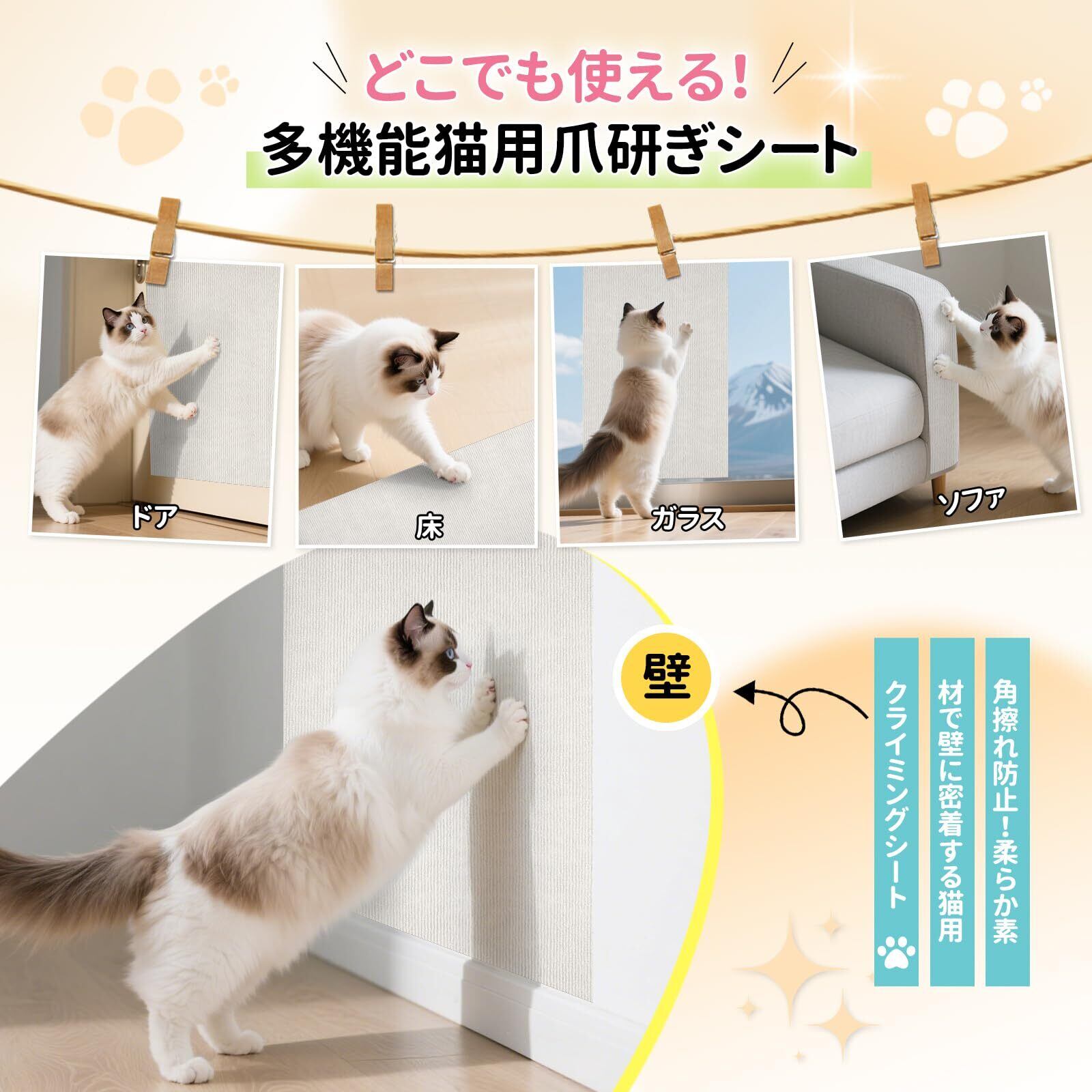 【剥がれない 猫 爪研ぎ防止】賃貸OKの強力固定:ペット 壁紙 保護に最適な環境配慮型粘着剤。この猫 爪研ぎマットは粘着性の裏地が付いており、環境に優しい接着剤でしっかりと固定できます。裏面の保護フィルムにはサイズが明確に表示されています。正確にカットでき、工具や釘を使わずに、既存のサイザルロープで覆われた猫用爪とぎポストに猫用爪とぎポストを取り付けることができます。取り付け簡単:裏地をはがし、お好みの場所に貼り付けるだけでしっかりと固定できます。