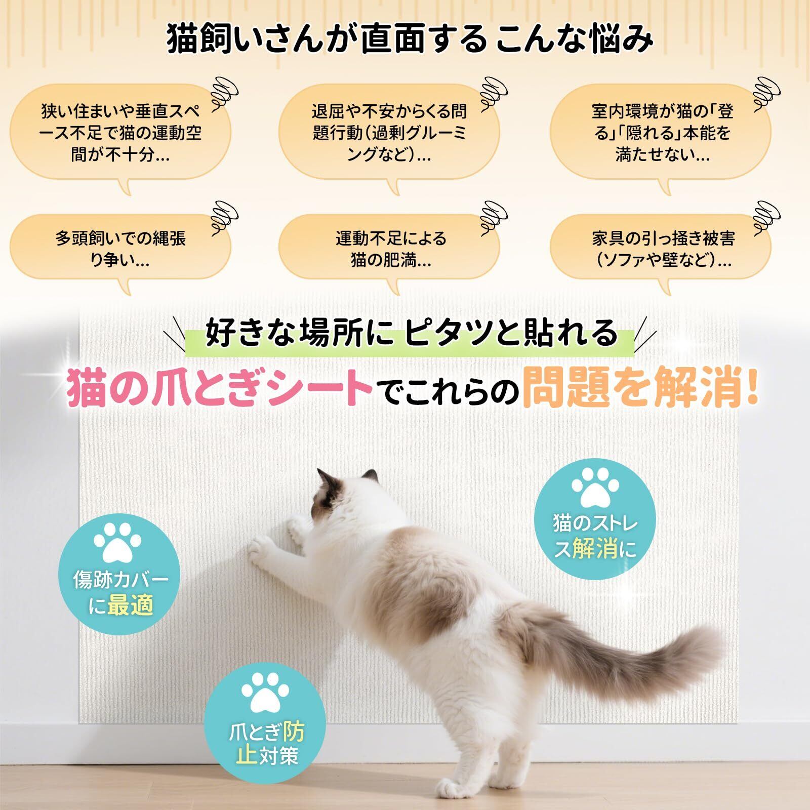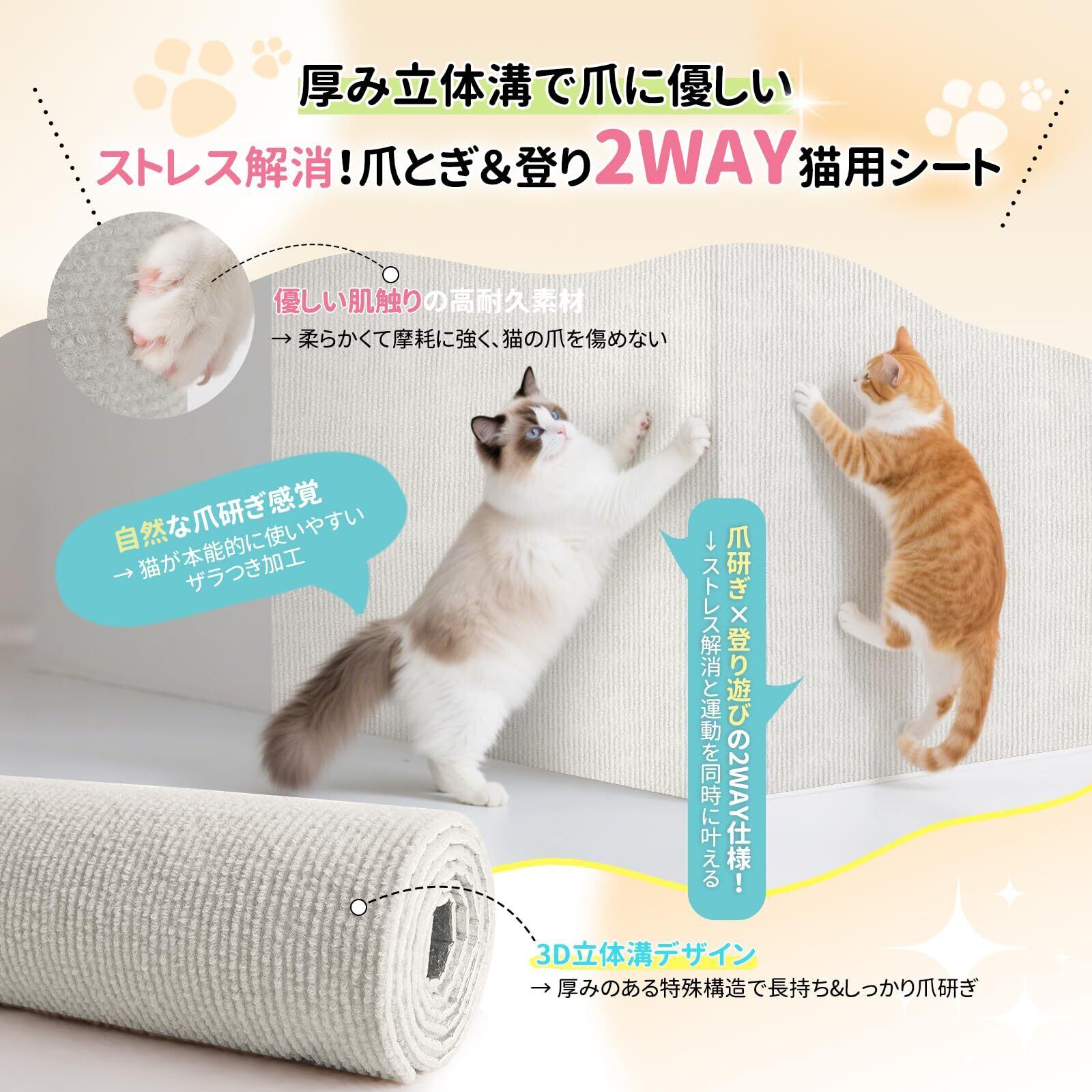 【猫用 猫 つめとぎ 防止 シート】プロ仕様の耐久素材:行動学博士著書『猫の本能』推奨の「3つの理想条件」を完全再現した波型溝デザインは、この猫爪研ぎ 壁に貼るは、高品質のフェルト素材を使用し、厚みのある3D溝で爪とぎが長持ちします。子猫 爪とぎから老猫 爪ケアまで対応。波型の表面デザインは猫ちゃんの興味を引きます。高い耐裂性と精巧な仕上がりにより、柔らかく耐摩耗性に優れ、長持ちします。猫のおもちゃや家具を保護します。猫用クライミングフレームの部品交換や家庭用品の保護など、ペットと家庭の調和を保つための理想的な選択肢です。