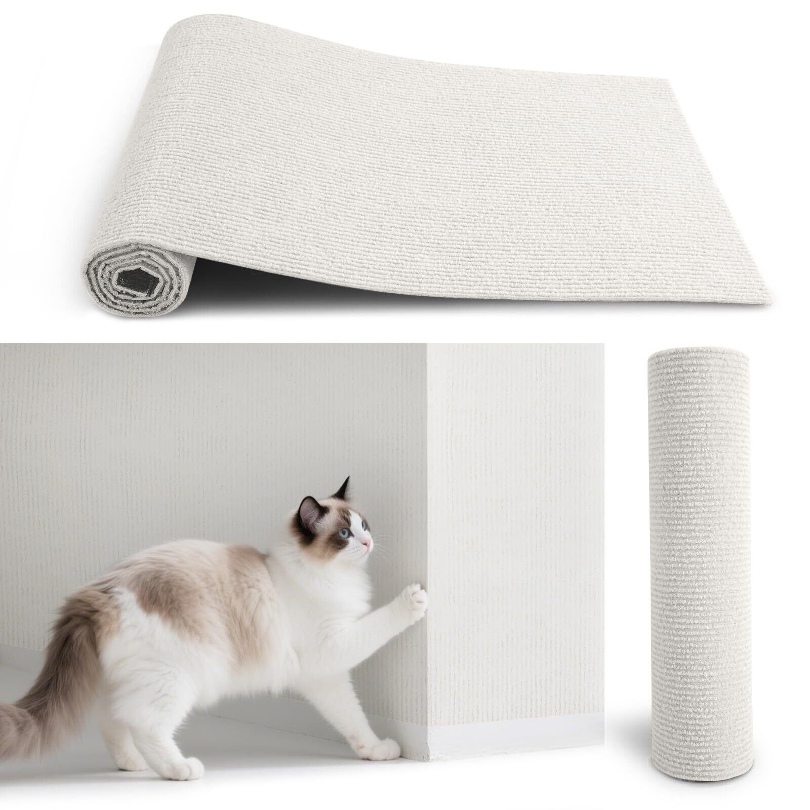 BOOMAGU 【獣医開発】猫 爪研ぎ 爪研ぎシート DIY自由な組み立て可能 超強粘着 剥がせる 厚手 家具傷防止 耐摩耗 引っ掻き防止 猫の爪研ぎマット キャットタワー補修用 壁/床/ソファ対応 猫 つめとぎ 防止 シート (クリームホワイト, 30*100CM)