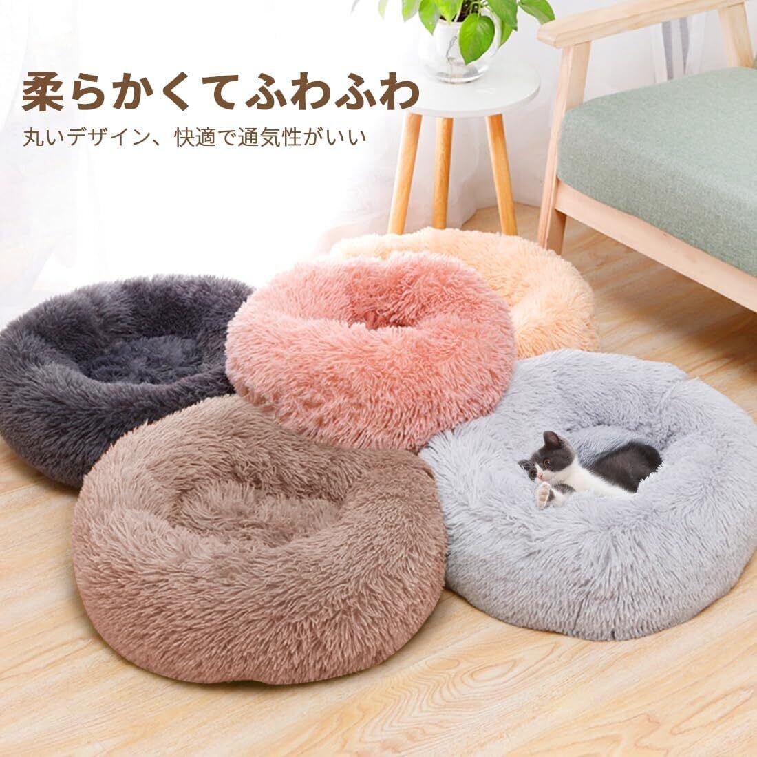 【快適な睡眠デザイン】:猫ベッドや犬ベッドは丸いドーナツのよデザインです。 盛り上がったエッジは、頭と首をサポートしながら快適な安心感を生み出し、子猫や子犬がより早く落ち着くのを助け、より快適で安らかな睡眠をもたらします。