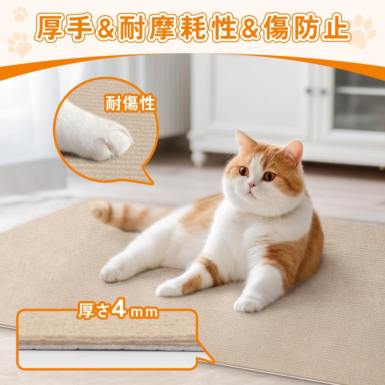 【厚手&耐摩耗性&傷防止】:爪研ぎシート 猫は、厚手の高品質素材を使用しており、耐摩耗性と防傷性に優れています。爪研ぎシートにより、長期間の使用に耐え、壁や床、家具を保護し、家庭の大切な家具を守ります。また、猫の爪の健康を維持し、楽しく快適な爪とぎ体験を提供し、ペットと共に長く幸せな生活を楽しむことができます!