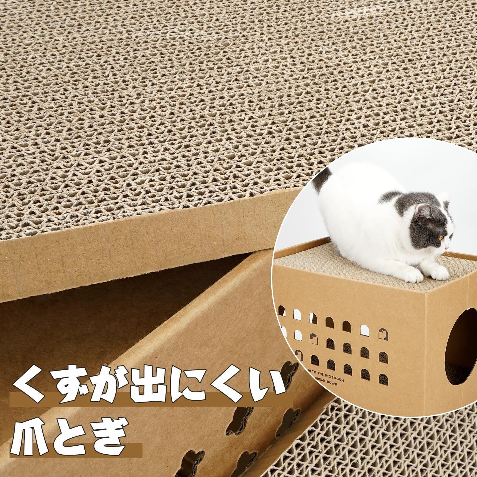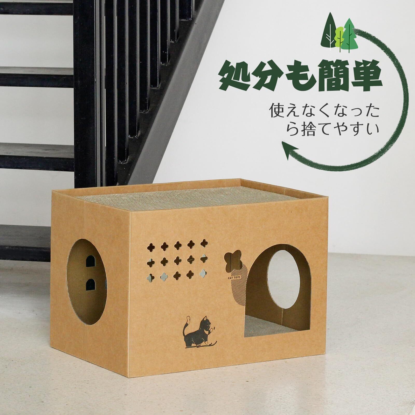 ULIGOTA猫 爪とぎ 段ボール キャットハウス 猫用 つめとぎ ダンボールハウス 猫ベッド 通気 丈夫 ストレス解消 組立簡単