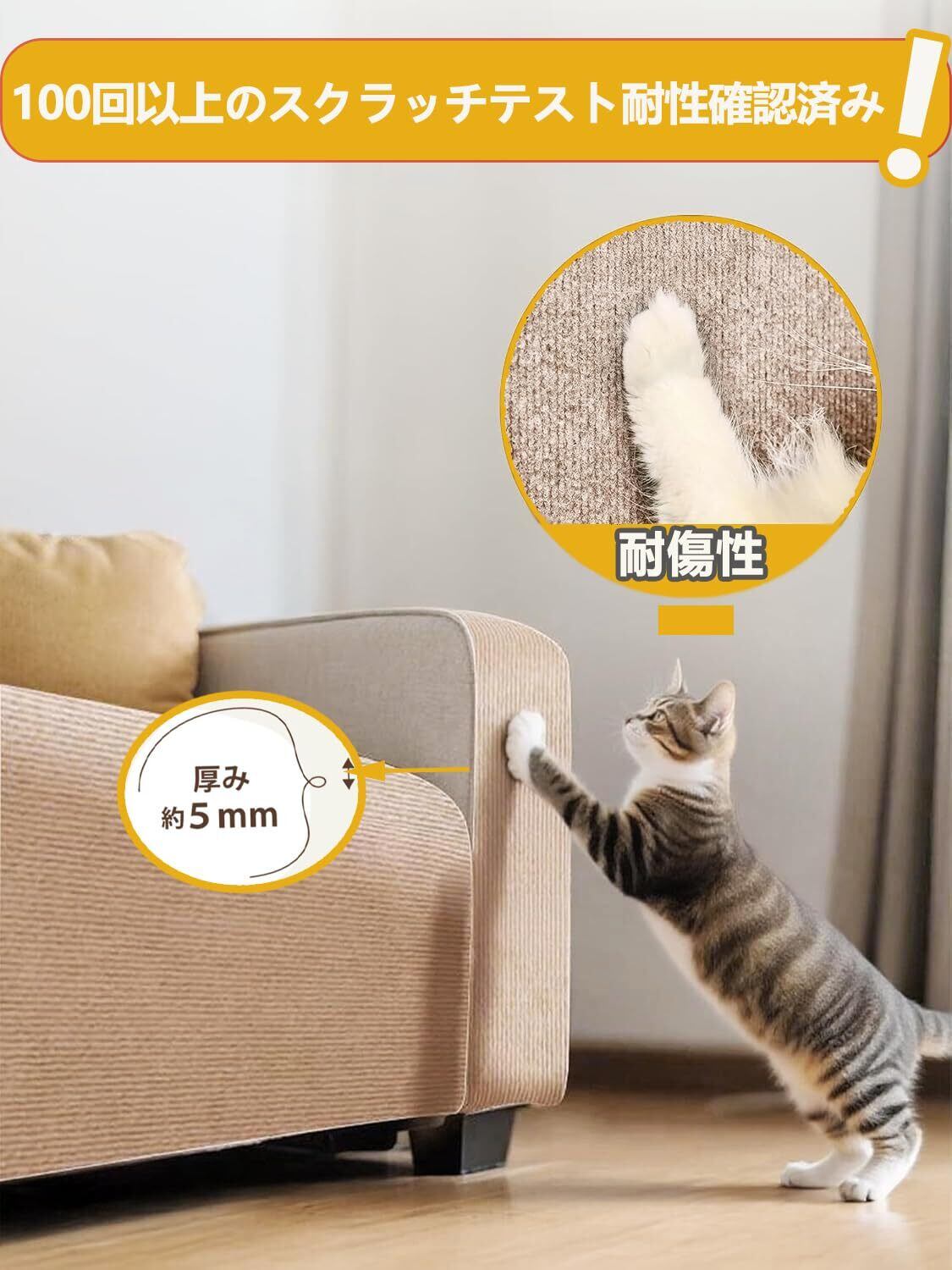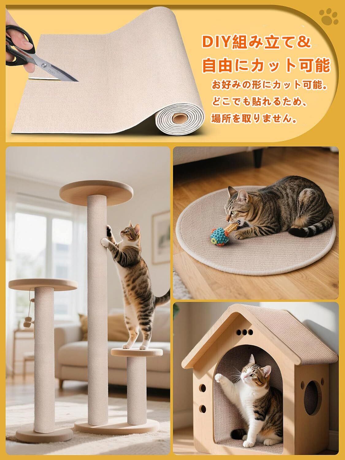 【厚手な3層構造】 爪研ぎシートは、獣医師推奨の高品質ポリエステル繊維を使用した3層構造です。耐摩耗性と防傷性に優れています。無毒無臭の安全素材のため、子猫でも安心できます。爪研ぎシートにより、長期間の使用に耐え、壁や床、家具を保護し、家庭の大切な家具を守ります。また、猫の爪の健康を保ちながら、楽しく快適に爪とぎをさせることで、ペットとのより長い幸せな暮らしを実現できます。