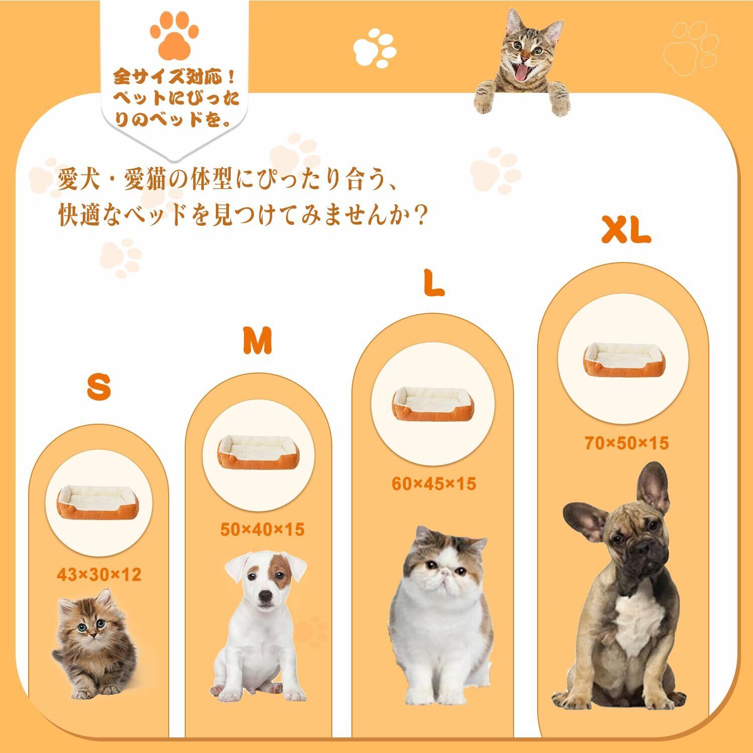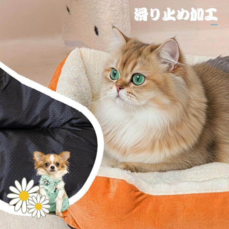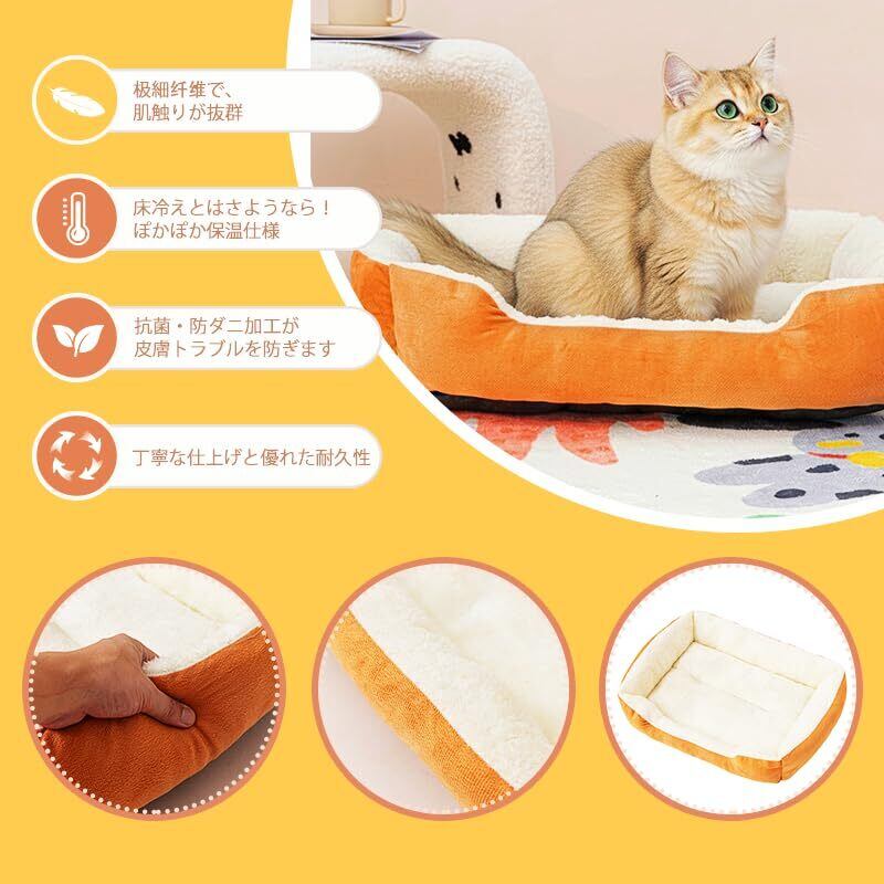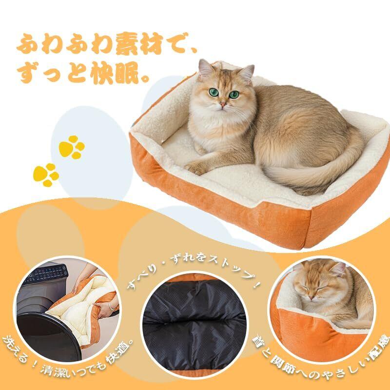 緑 絨 のしっぽ 猫 ベッド 犬 ベッド ペットベッド 洗濯機で丸洗い可能 滑り止め加工 枕付き ふわふわモチモチの3D棉 超柔らかい 通年使用可能 小型中型犬猫用 ペット用マットレスpet bed (オレンジ, M 50*40*15cm)