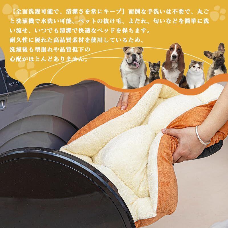 【丸ごと洗濯機で洗える!いつでも清潔を保てます】耐久性に優れた高品質素材を使用しているため、面倒な手洗いは不要。製品全体を洗濯機で水洗いでき、ペットの抜け毛やヨダレ、嫌なニオイもサッと洗い流せます。いつでも清潔で快適なペットベッドをお届けします