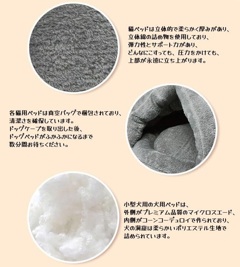 【お手入れ簡単な犬用ベッド】: 各猫用ベッドは真空バッグで梱包されており、清潔さを確保しています。 ドッグケーブを取り出した後、ドッグベッドがふかふかになるまで数分間お待ちください。 ペットベッドの上部を持ち上げて、形を整えることができます。犬用スリーピングバッグは、形が崩れることなく洗濯機で洗えます。