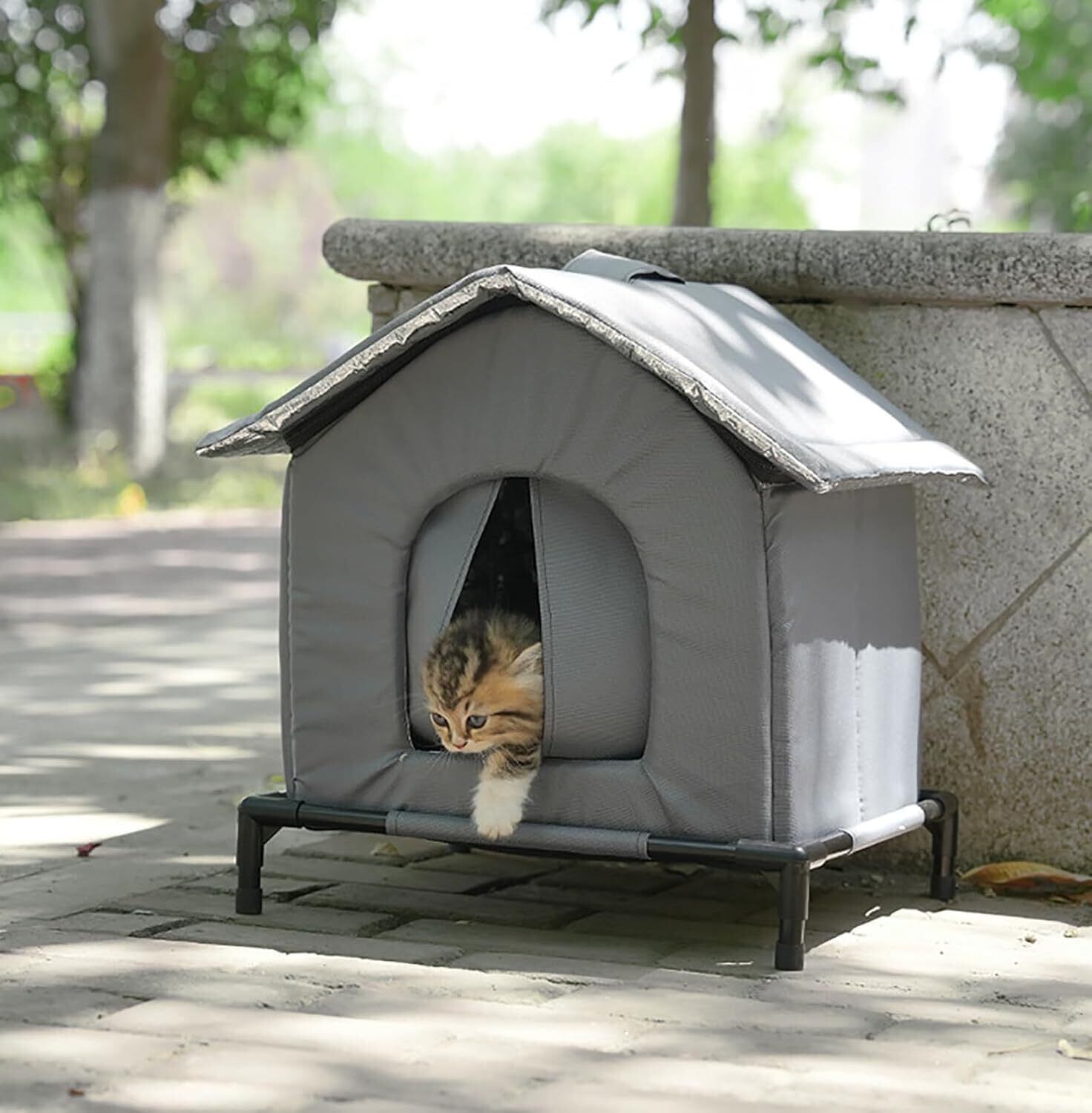 【2025新開発】外猫ハウス 屋外 防水 冬 猫用ハウス 猫小屋 屋外猫キャット防寒 雨よけ 防風 防雨 外猫ハウス 野良猫 避難所 猫小屋 屋外 冬寒さ対策 シェルター 組立簡単 猫の巣 ペット用品 猫 子猫 小型犬用 ペットハウス (グレー, M(36*36*43CM))