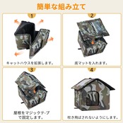 【簡単な組み立て & 便利な持ち運び】 折りたたみ式で組み立てが簡単です。また、手揚げ式で持ち運びが便利です。夏のキャンプ活動にペットの慣れたハウスも持って行って、ゆっくり楽しめますし、大雨の時、持ち手を使って、野良猫をもっと安全な所に連れておくことができます。