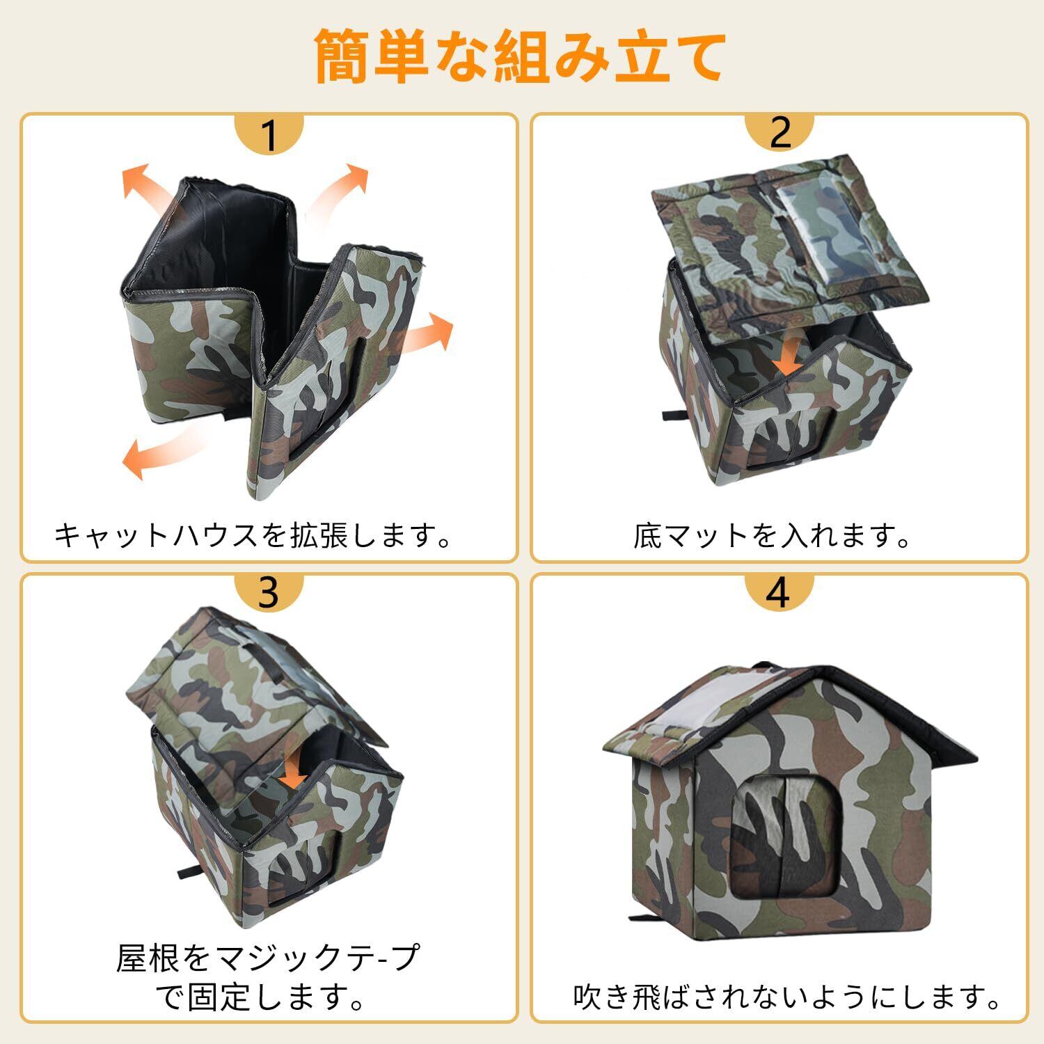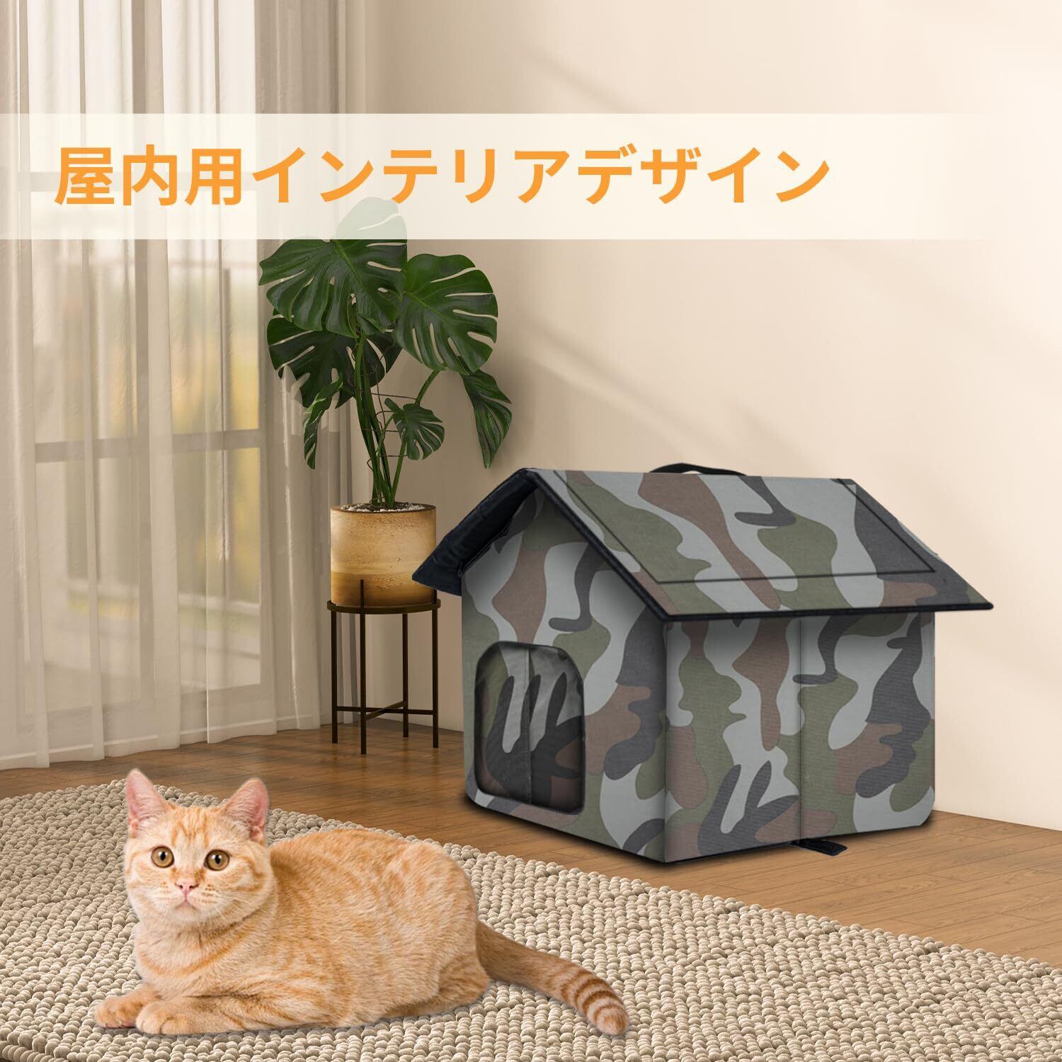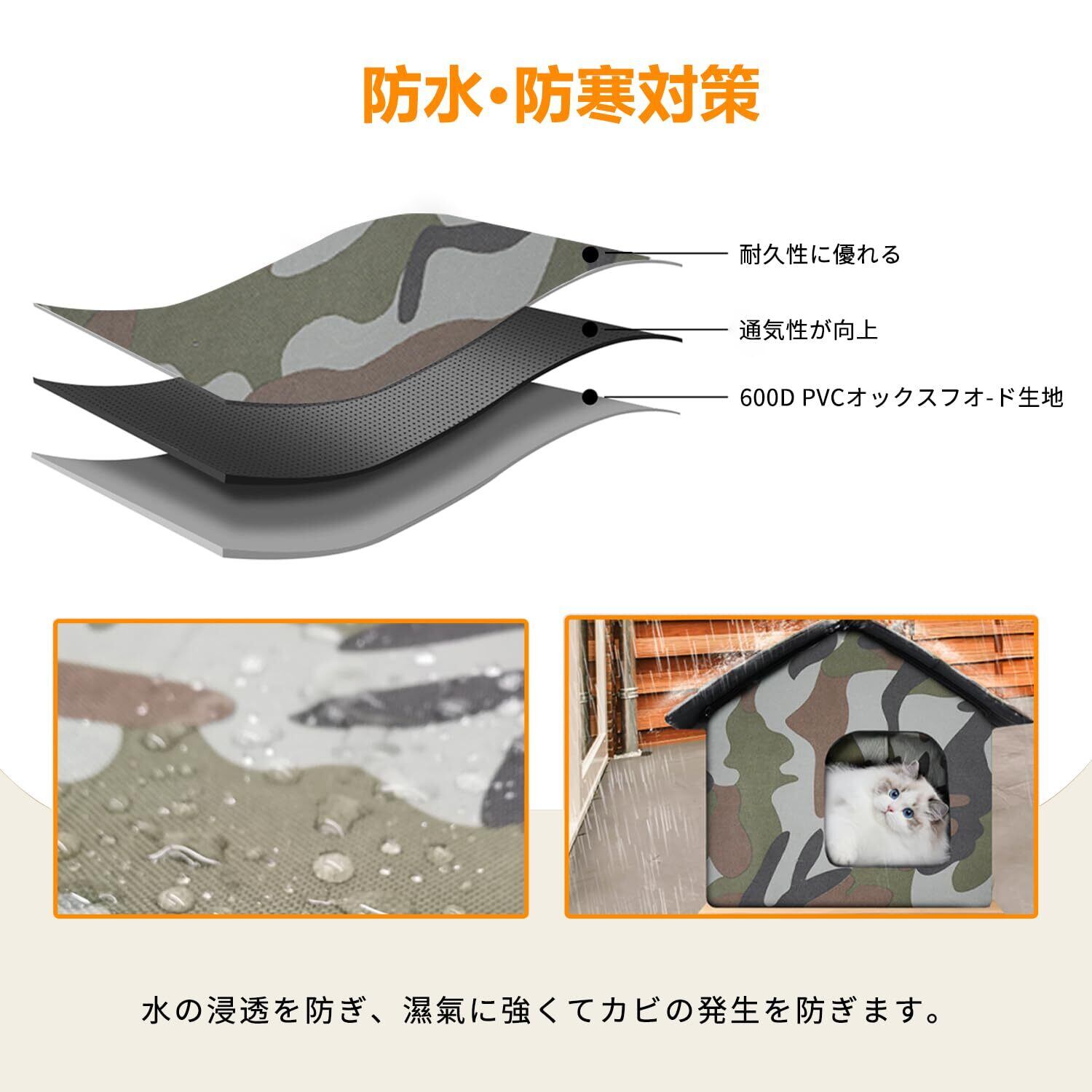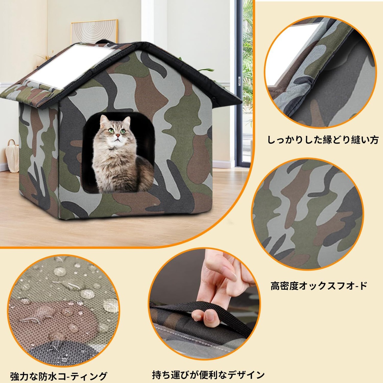 【耐久性のある素材】高品質な厚手の防水オックスフォード生地とスポンジコンパートメントで作られています。耐久性や防水性、耐候性に優れているだけでなく、暖かくて快適な環境を提供します。冬のアウトドアで使うには最適なキャットハウスです。また、取り外し可能なクッションも付いており、ペットが快適に寝ることができます。