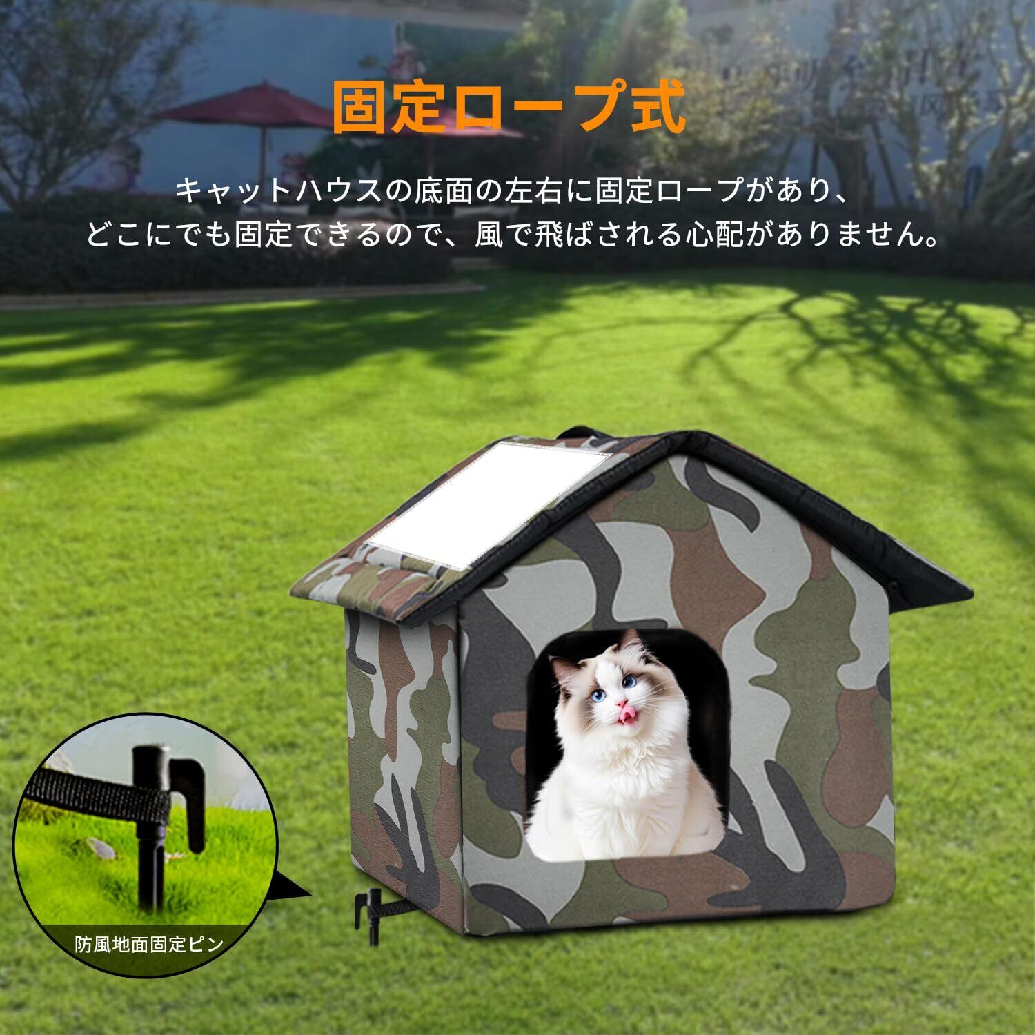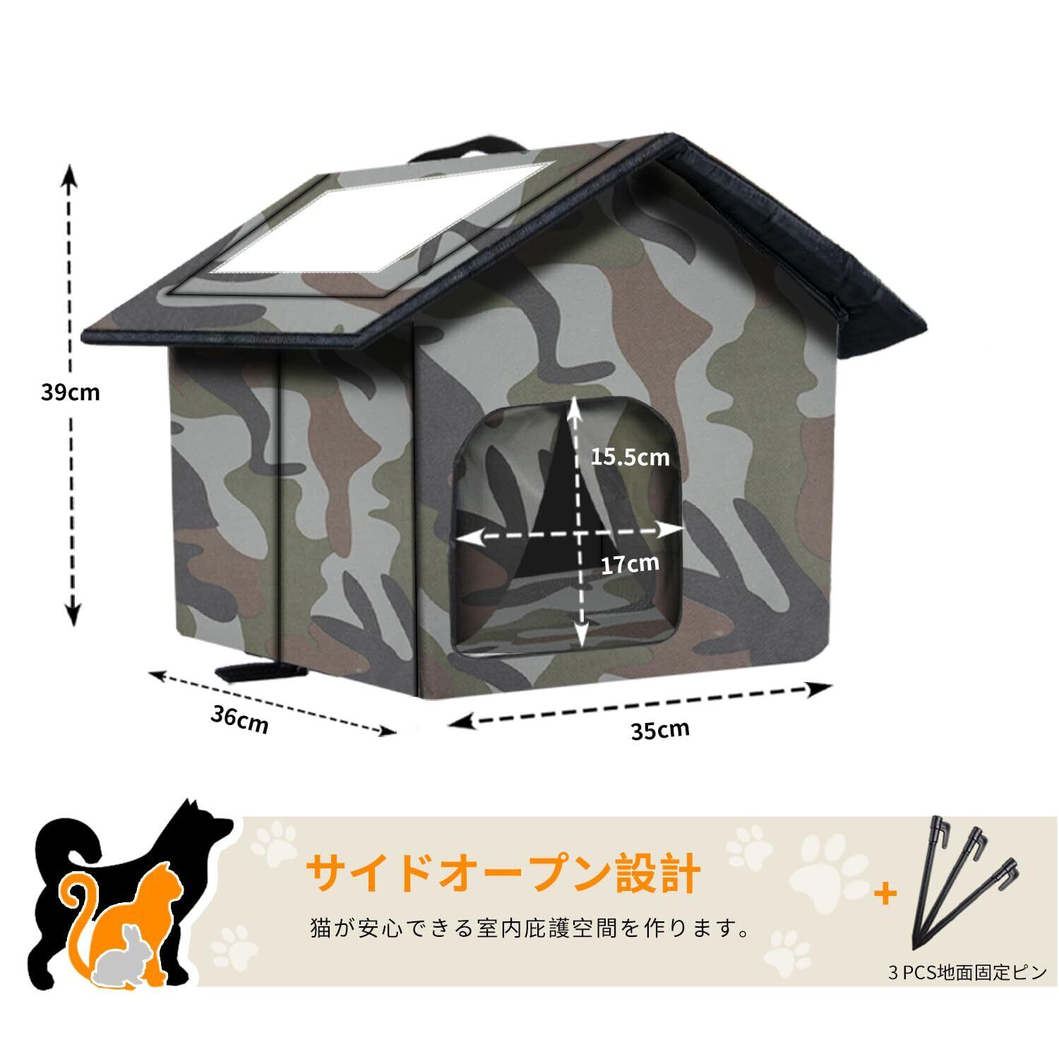 屋外猫キャットハウス、手揚げ 猫ハウス、サイドオープンドア付き猫ハウス、組み立て簡単、折りたたみ式 大雨の対策 カラス対策アイテム ペットの庇護空間 猫用シェルター 風で飛ばされる心配なし ハンドル付き 持ち出しに便利 丸洗い可能 お手入れカンタン ペグ三つ付き
