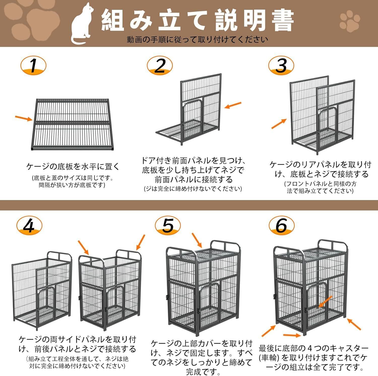 頑丈で安心な設計:このキャットケージは高強度金属フレームと補強構造を採用し、活発な猫が飛び跳ねても安定性を保ちます。多頭飼いにも対応できる広々としたスペースで、複数の猫が同時に過ごしてもゆとりがあります。接合部分は特別な固定方式で強化されており、長時間使用してもぐらつきにくい耐久性のある設計です。