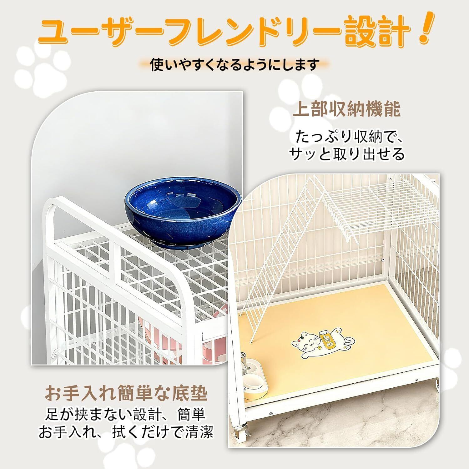 便利な収納機能:天板部分には広々とした収納スペースを設け、ペット用品の整理整頓をより快適に。キャットフードやおもちゃ、ブラシなどの小物もすっきり収納でき、使い勝手抜群。ペットライフの効率化と快適さを両立した、実用的な収納ソリューションです。