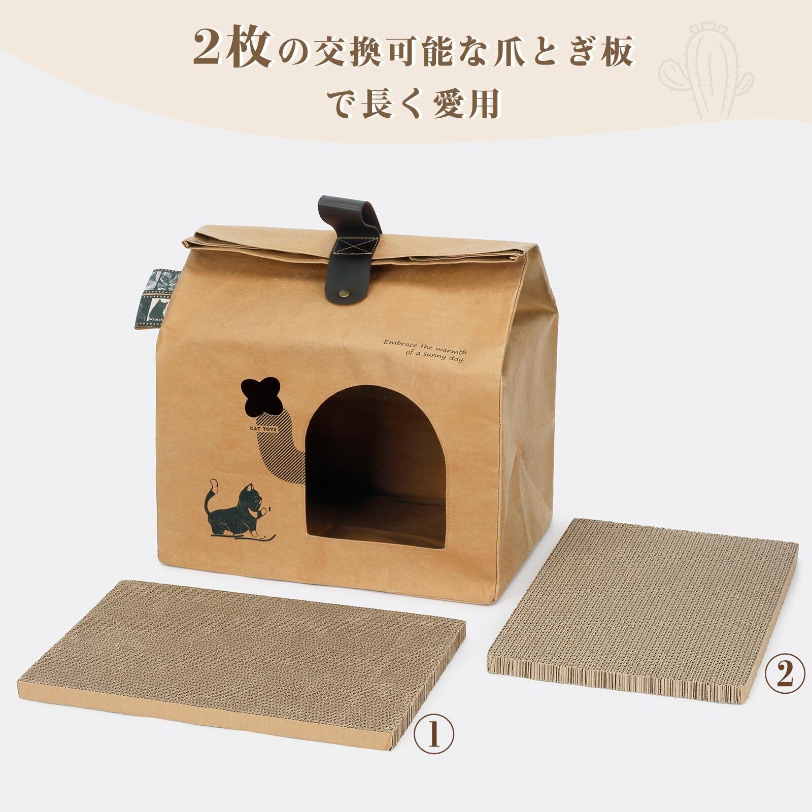 洗える 猫ハウス クラフト製 猫ベッド 爪研ぎハウス 折りたたみ式 交換可能爪とぎ板2枚付き 消臭・抗菌 ペット用寝床