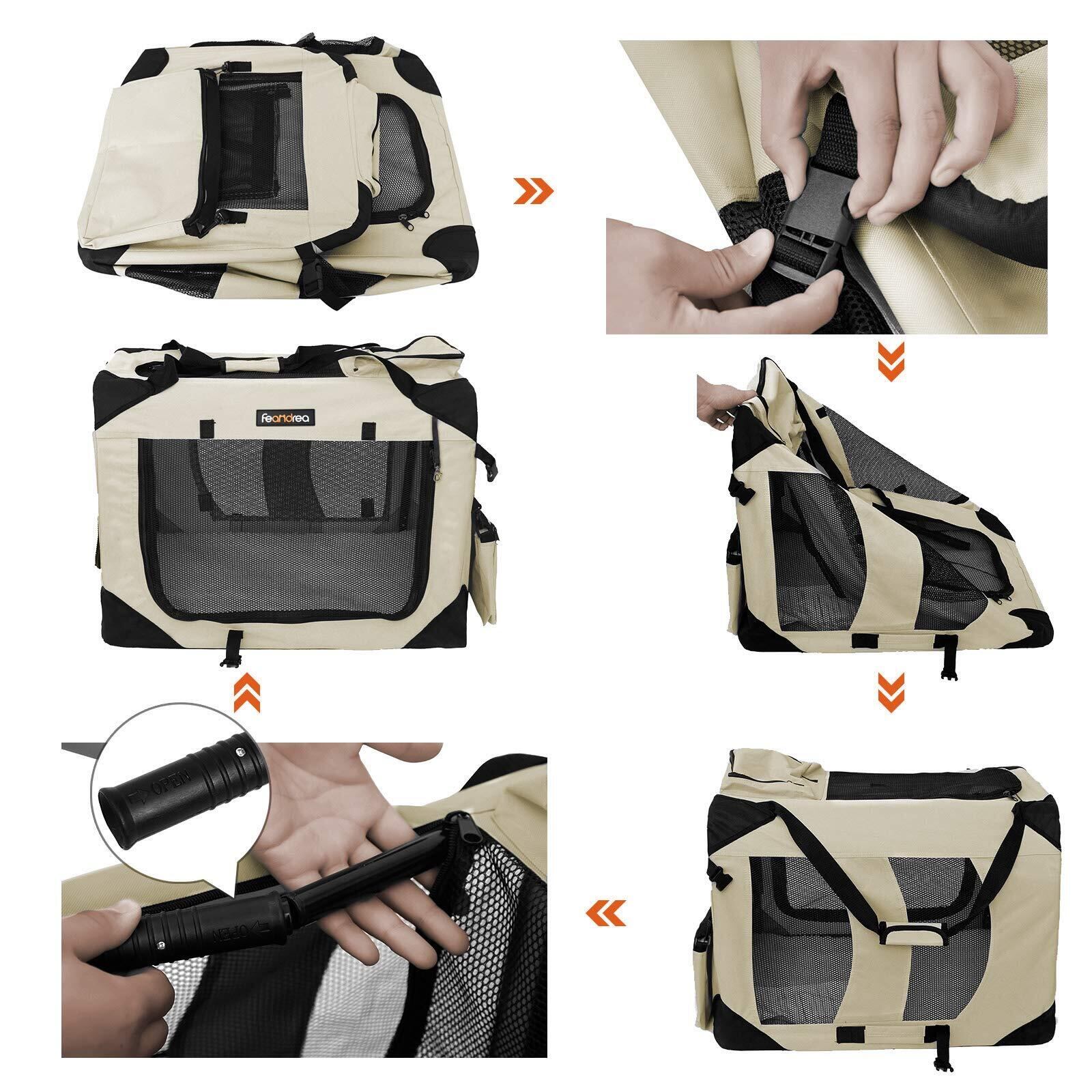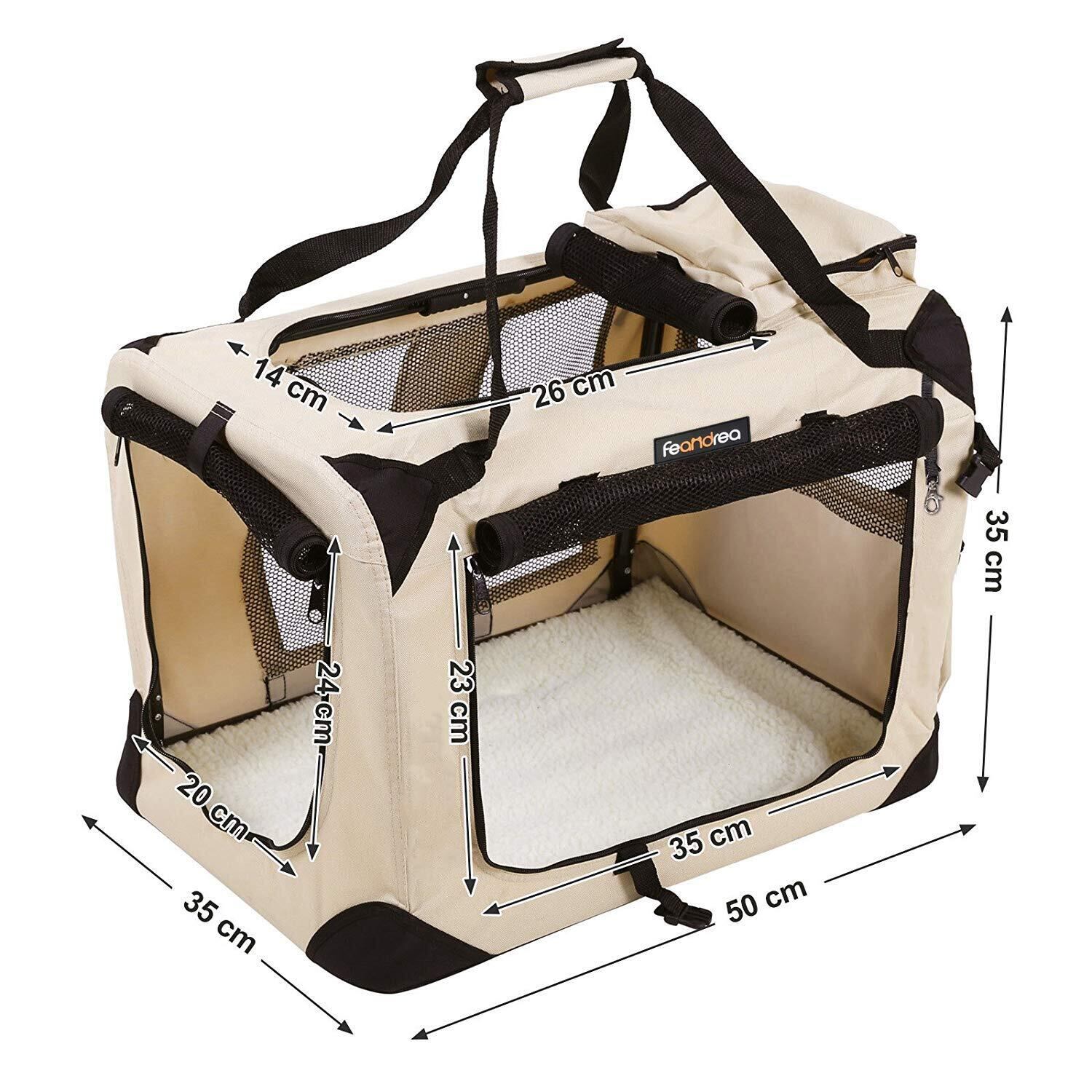 FEANDREA ペットキャリー 犬 猫 キャリーバッグ キャリーケース 折りたたみ 50×35×35cm ベージュ NPDC50W