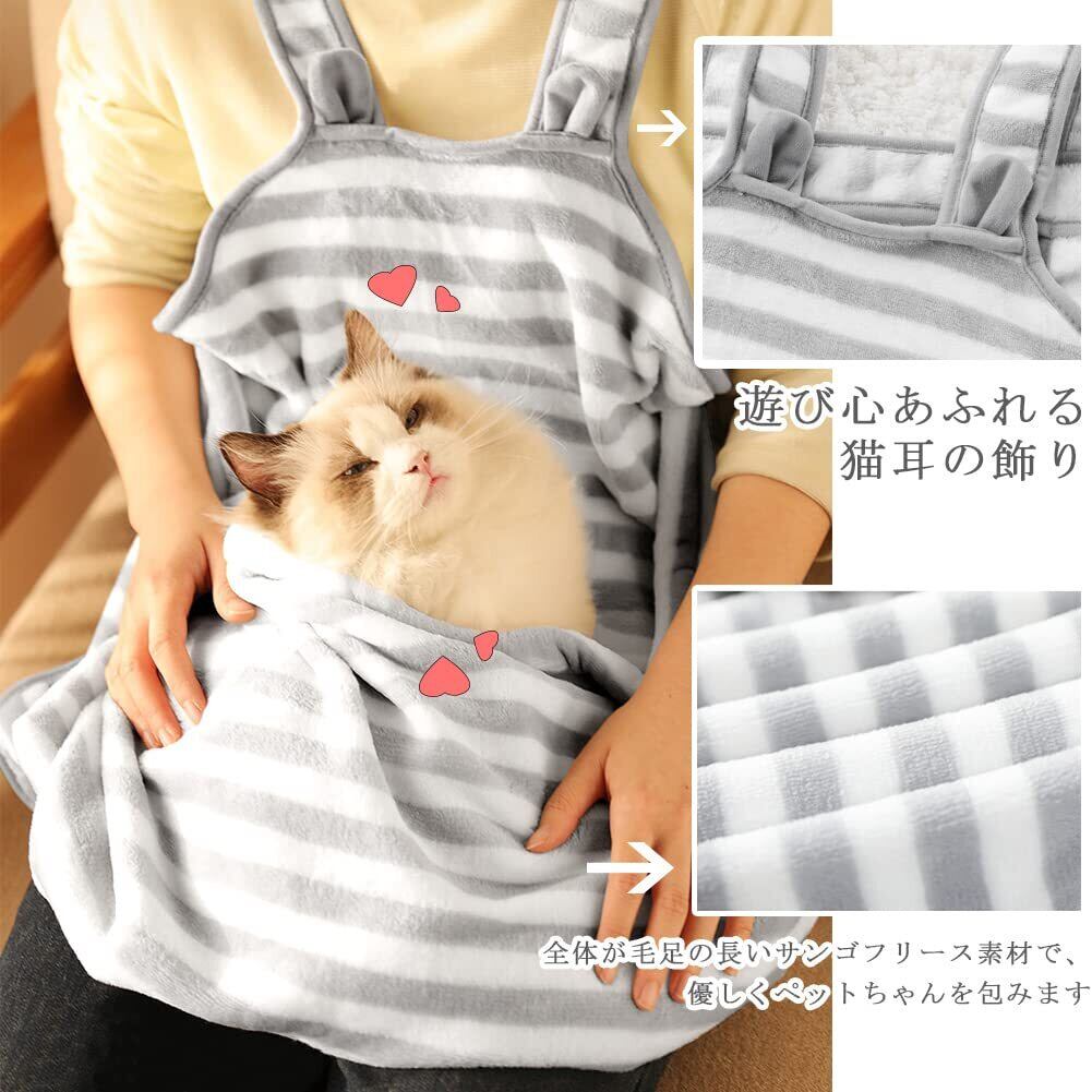 Bidason 猫 ベッド ペット 寝袋 抱っこ紐 抱っこエプロン スリング もふもふ サンゴフリース 洗える 調整ストッパー ポンポン付き 毛付き対策 飛び出し防止 小型犬 タオル マット 冬