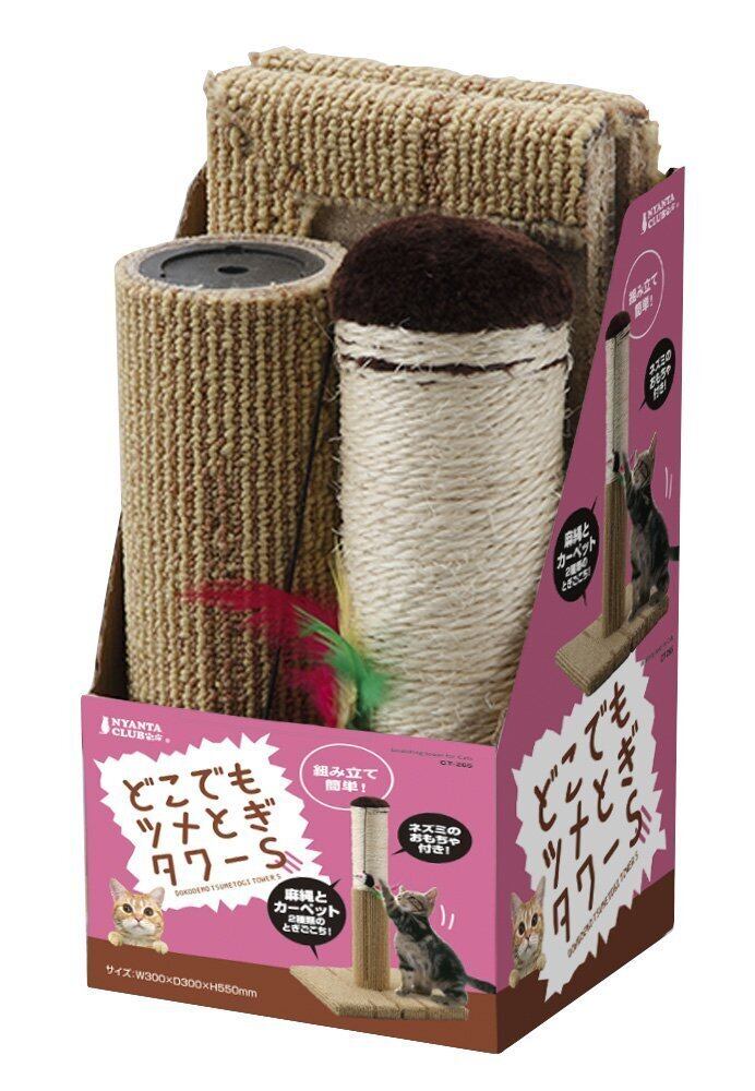 組み立て簡単! 麻縄とカーペットで楽しくツメとぎ! ネズミのおもちゃが付いてネコちゃん大喜び! ワッシャーは、化粧箱に印刷されているイラストでは小さく見えますが実物は支柱の底面とほぼ同じサイズの金属板になります、支柱の底板と見間違わないように