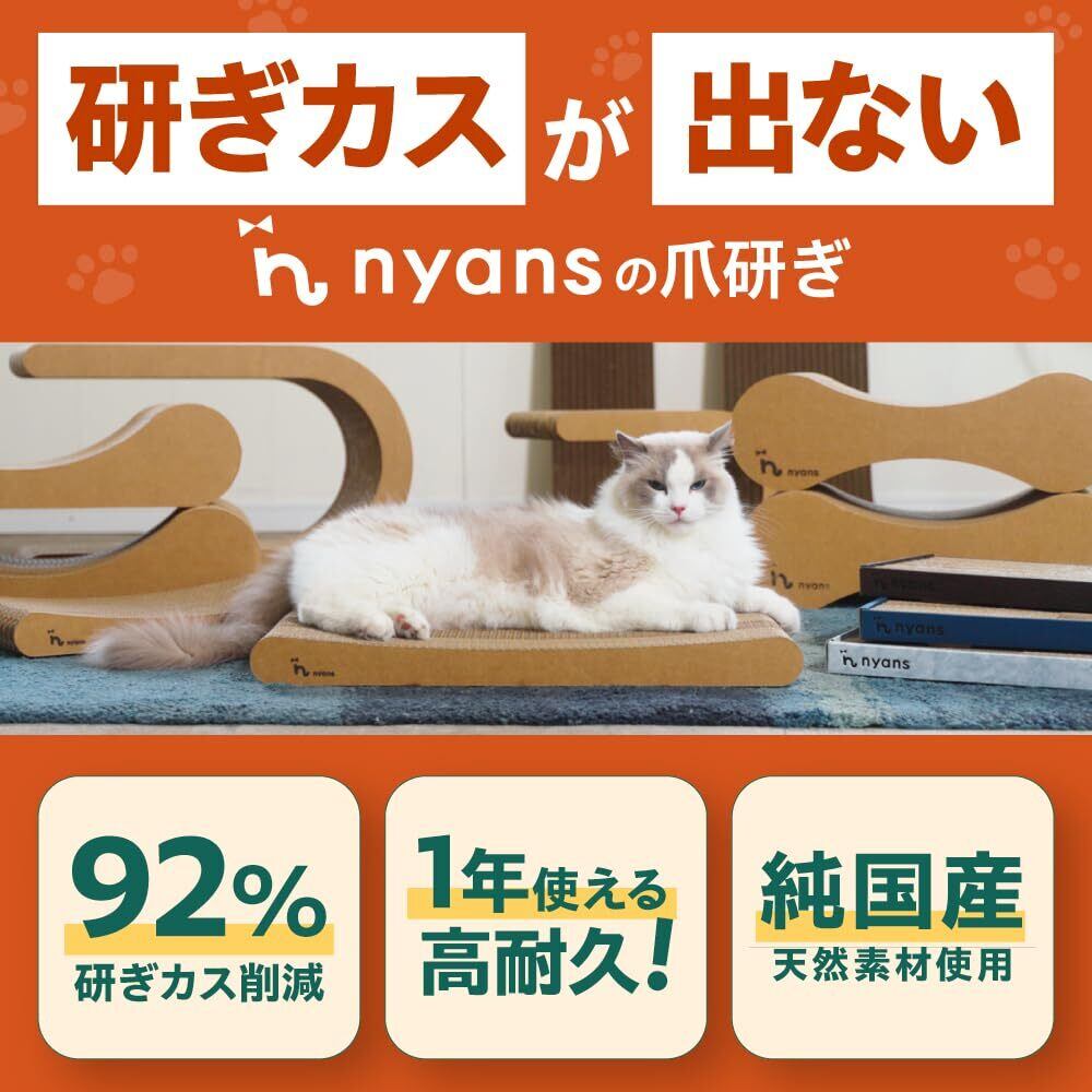 ⦅nyans(ニャンズ)の爪研ぎ⦆「猫の本能に応える、究極の心地よさ」猫は本来、木で 爪研ぎ をする生き物です。だからこそ、ニャンズは猫の本能が喜ぶ「木の香り・木に近いとぎ心地」を実現した 爪研ぎ を開発しました。 とぎカスが出にくい純日本製強化ダンボールを使用。両面使えて3倍長持ちするニャンズの 爪研ぎ をぜひお試しください!