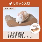 ⦅ベッドとしても使える、リラックス型⦆ 猫ちゃんがのんびりくつろげる形を追求したリラックス型。 爪研ぎ としてだけでなくベッドとしても使えるため、 爪研ぎ をたっぷり楽しんだ後にそのままリラックスタイムを楽しむことができます。 爪研ぎ スペースが猫ちゃんのお気に入りの場所に!