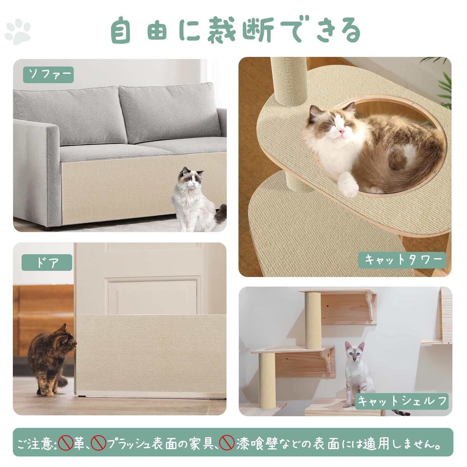 「多種の場所に適用」 自由にカットできるため、本製品は様々の場所に使用できます。例えば壁、布/木製ソファー、戸棚、タンスなどネコちゃんが爪とぎしがちな場所に適用します。更に、キャットタワーなどのリペアにも使えます。ご注意:革、ベルベット、マイクロファイバーの表面、または特殊塗装加工された表面には適用しません。