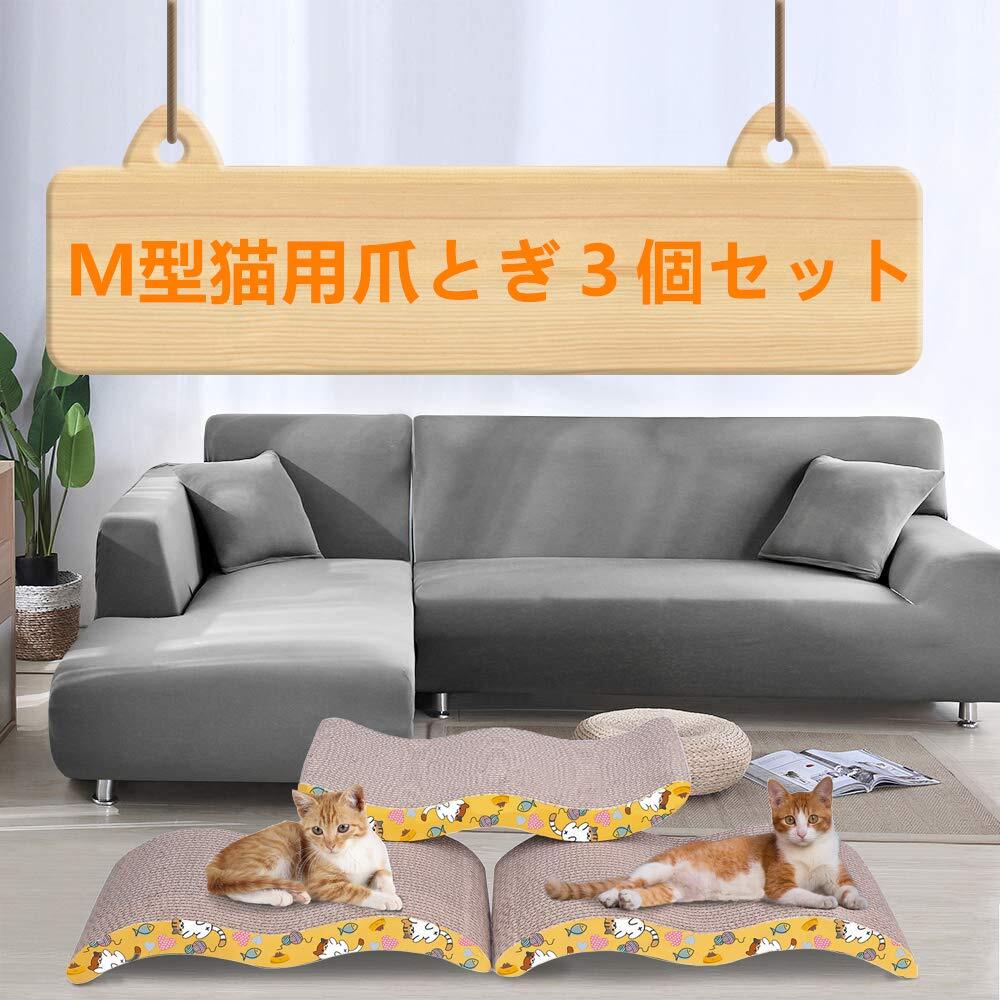 【商品仕様】M型猫用爪とぎ3個セット サイズ(一個):(幅X奥行X高さ) :44×20×7cm。 重量:0.35Kg