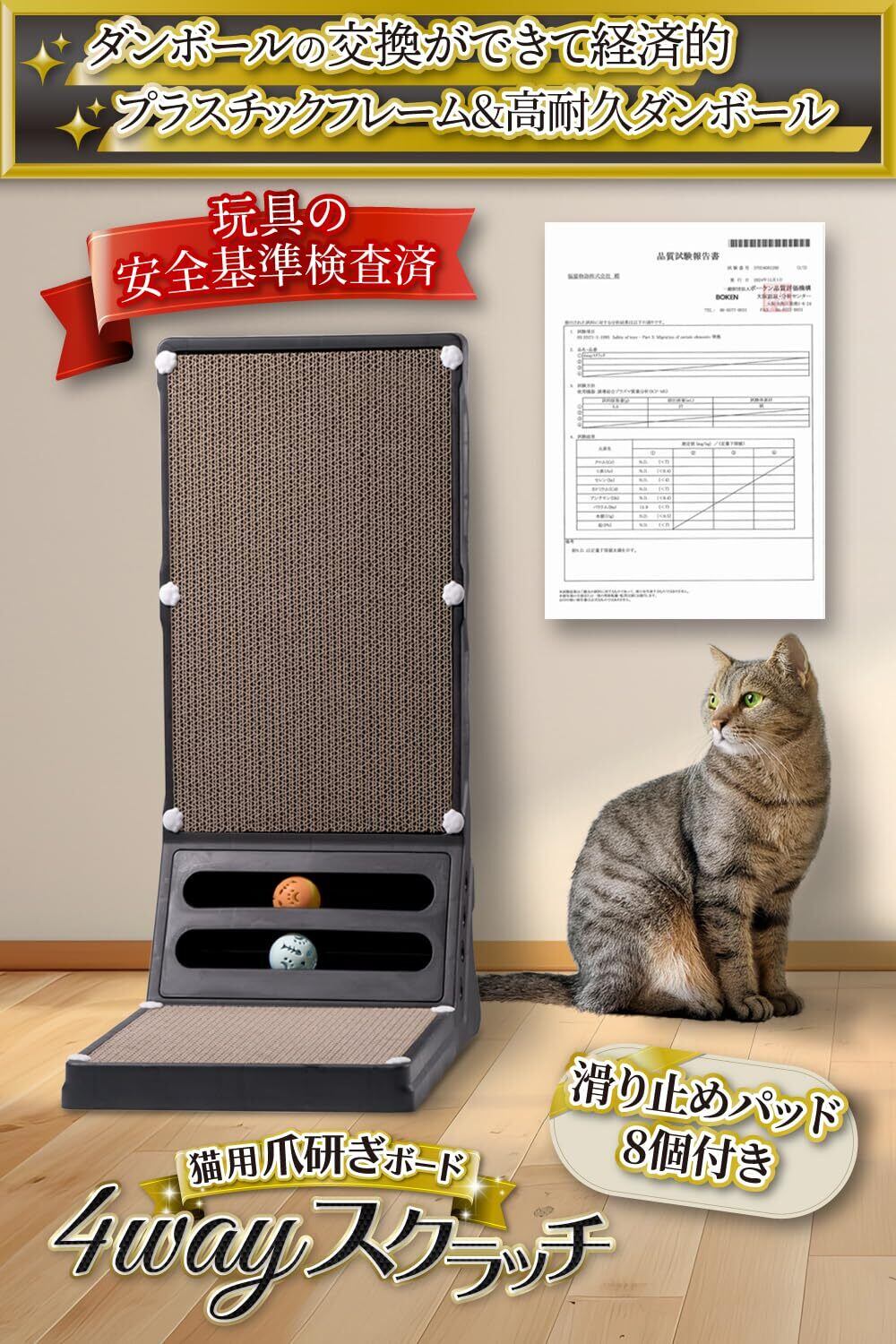 福猫物語 猫 爪研ぎ 4wayスクラッチ 段ボール交換式 縦型 L字 60x40x23.5cm 滑り止めパッド8個 安全基準検査済