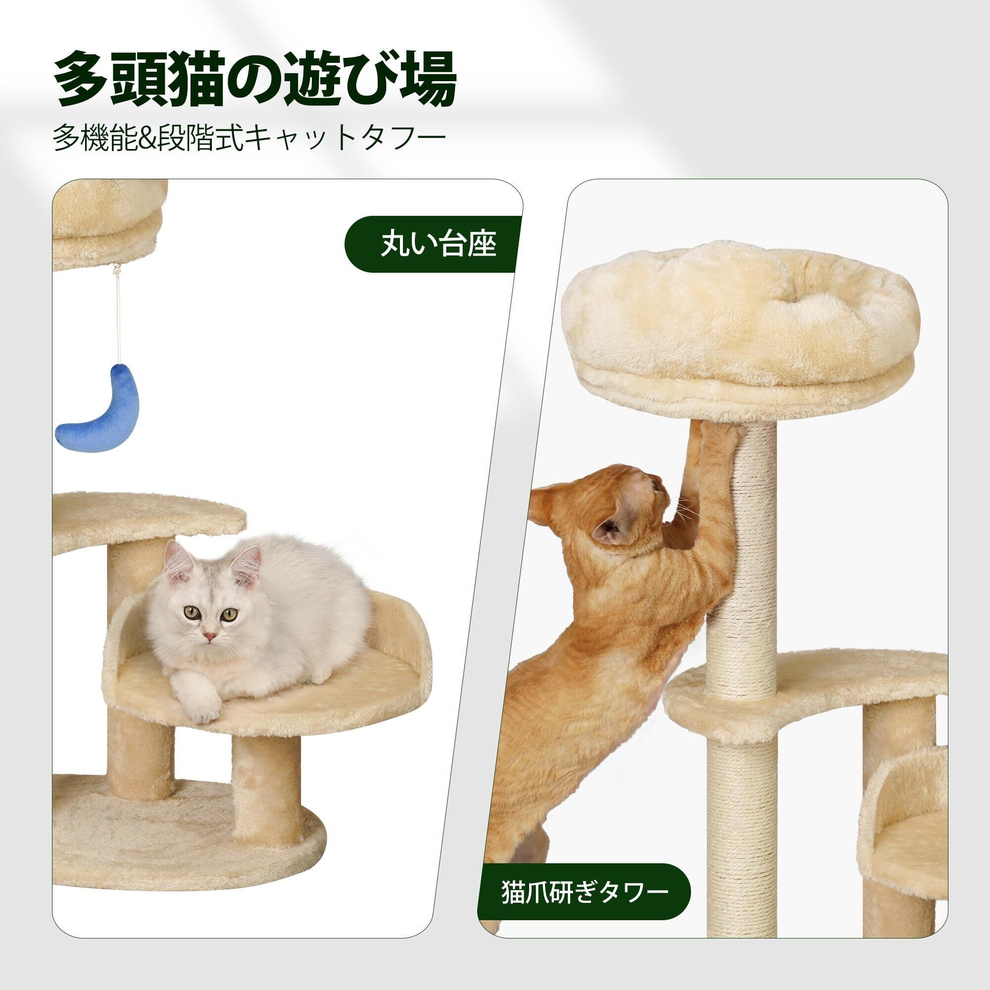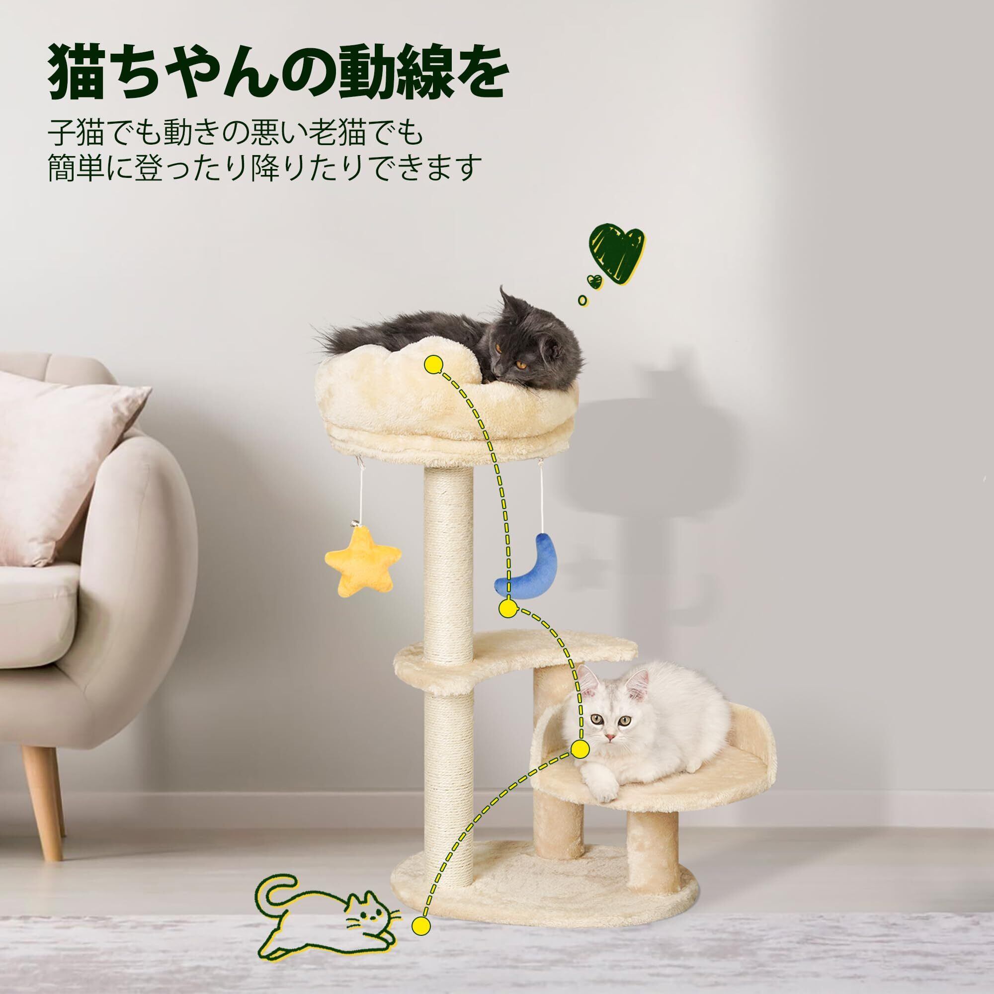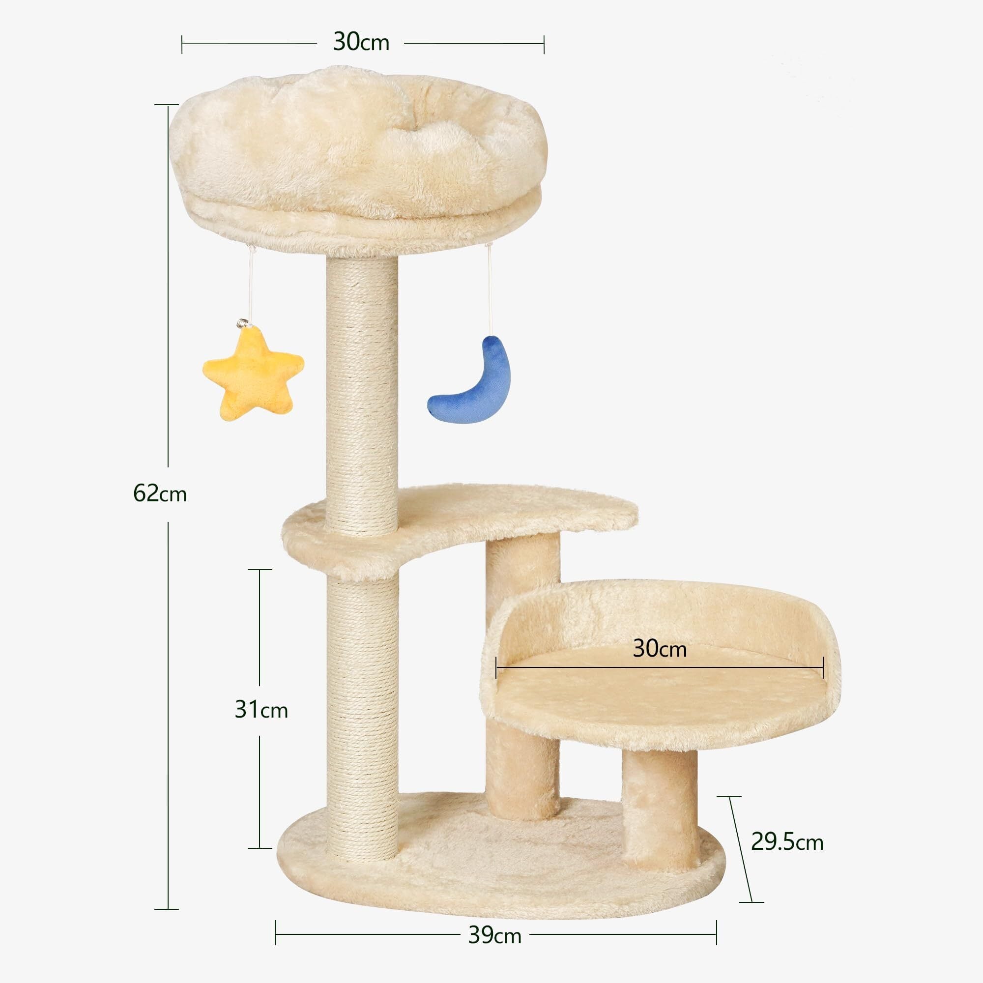 Meecal 仔猫用 キャットタワー ミニ 雲型デザイン (6ヶ月以下/体重4kg未満対応) 省スペース 爪研ぎ付き 組み立て簡単 おしゃれ猫タワー ブラック 高さ62cm ベージュ