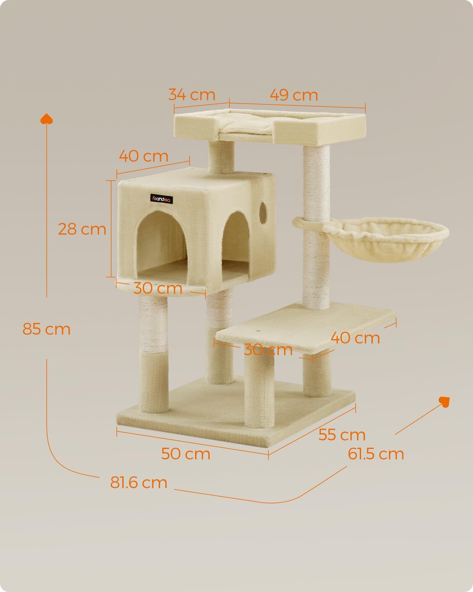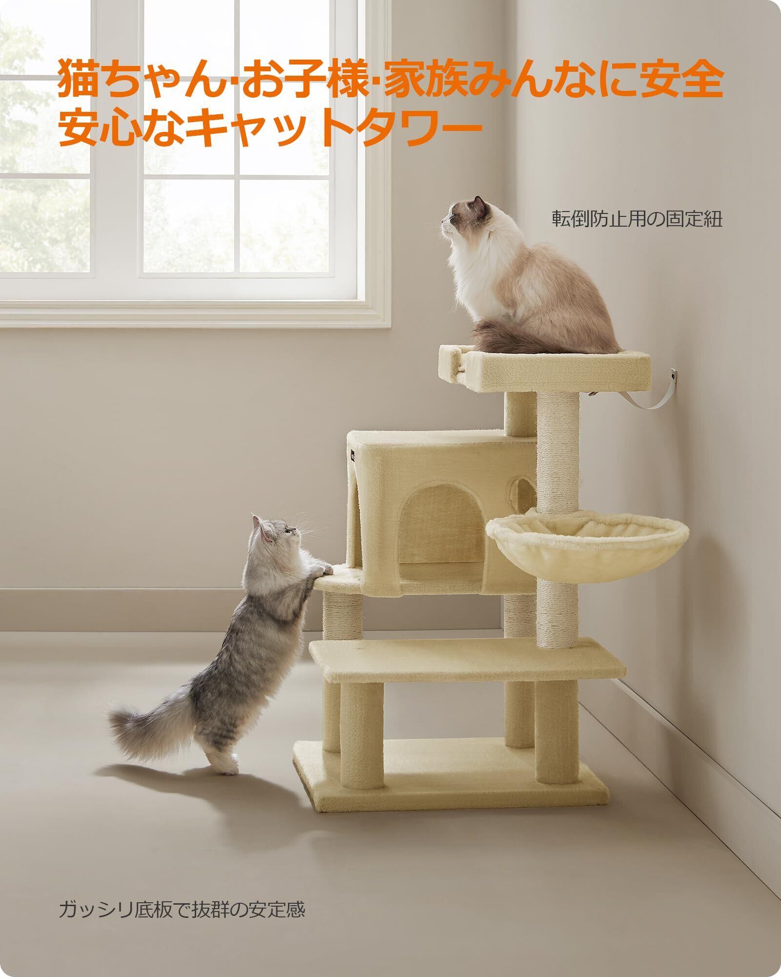 FEANDREA キャットタワー据え置き 多頭飼い 大型猫用 大きい猫にピッタリ 巨大ハウス 広い見晴らし台 PCT42M