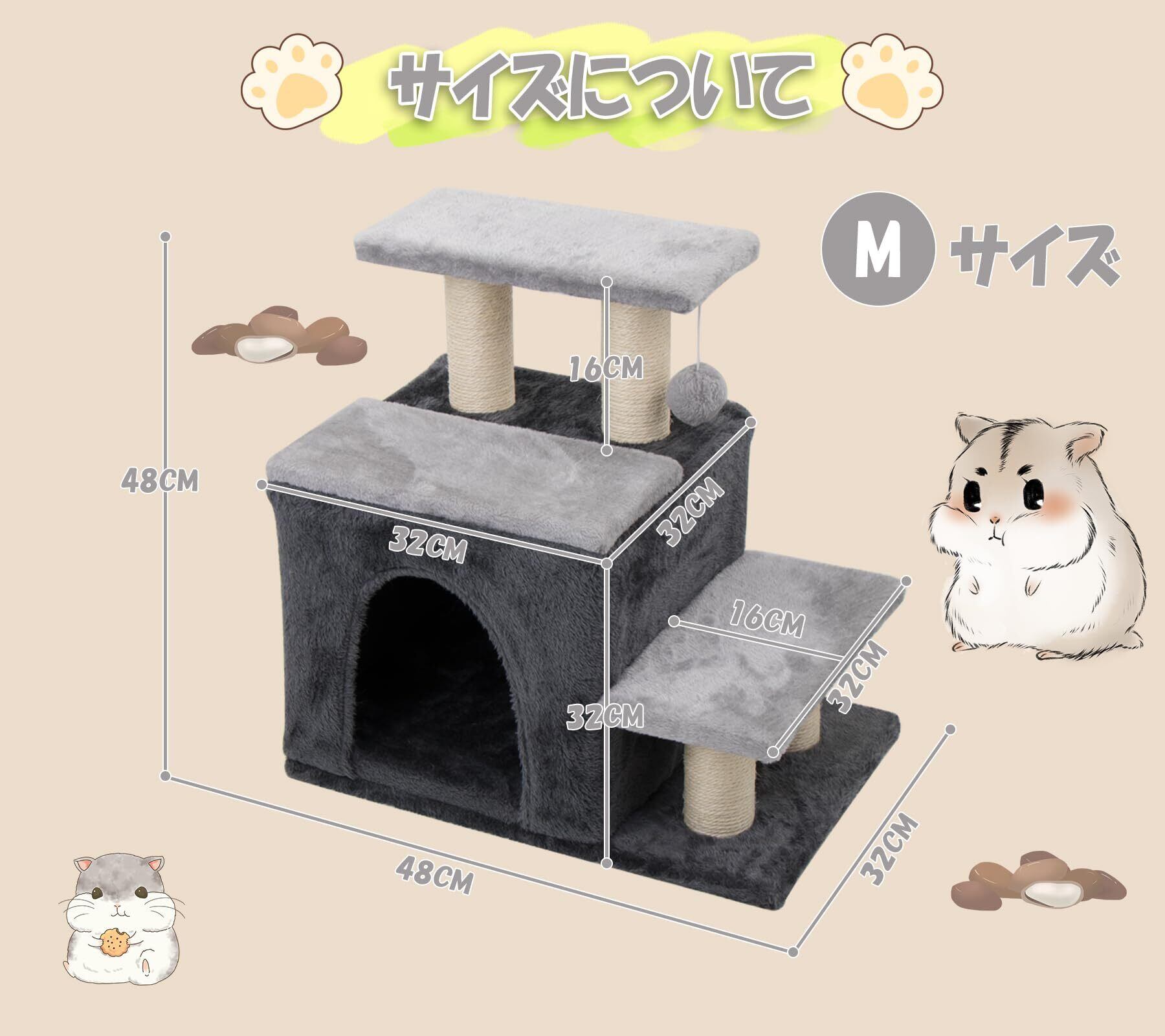 Hapineko(ハピネコ)3in1 キャットタワー ミニ 猫 犬 ステップ 段階 ハウス 爪とぎポール ボール スタイル調整可能 シニア猫/子猫/小型犬対応 ジャンプの苦手な猫ちゃん 密度UP30% MDF板採用 省スペース コンパクト 高さ48CM (グレー, M)